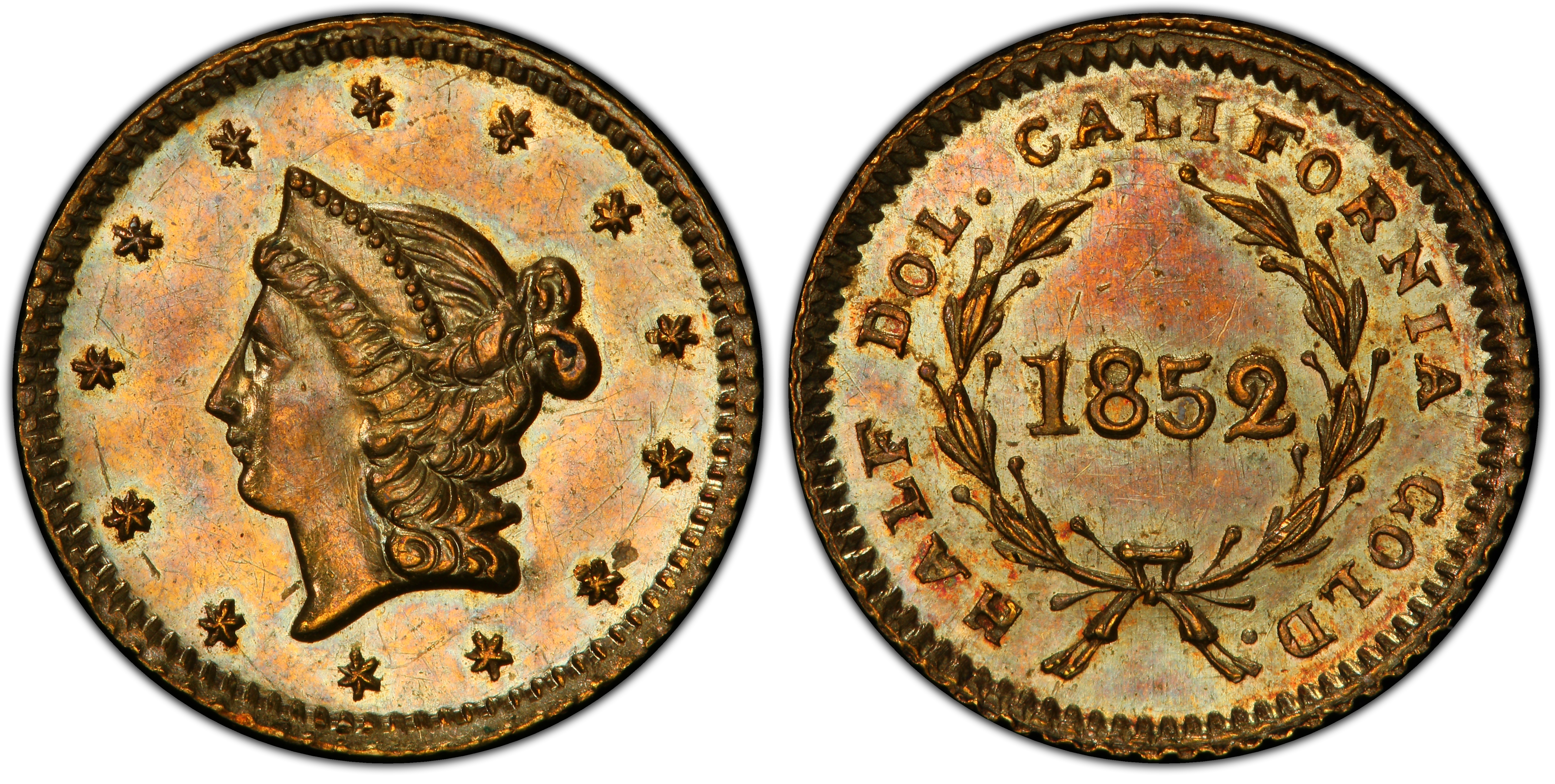 The BG-427 half dollar is a quintessential artifact from the chaotic, economically formative years of the California Gold Rush. Struck in 1852, it belongs to what numismatists classify as 'Period One' (1852-1857) of the California Fractional Gold series. Unlike later issues which were primarily souvenirs, Period One pieces were a direct response to a severe and crippling shortage of small denomination coinage. With the massive influx of population after 1848, San Francisco's economy boomed, but commerce was hamstrung. Gold dust, the primary medium of exchange, was imprecise and prone to theft and fraud. Large private gold coins ($5 to $50) handled major transactions, but the lack of circulating federal silver meant that everyday purchases for goods and services were exceedingly difficult. Into this void stepped jewelers and metallurgists who possessed the skills and raw materials to create a functional currency. For decades, this specific variety, BG-427, was attributed by pioneering researcher Walter Breen to the French jeweler Antoine Louis Nouizillet. However, exhaustive modern research, principally by Robert D. Leonard, Jr. for the second edition of the Breen-Gillio reference work, has convincingly re-attributed this and related issues to the Joseph Brothers, Lionel and Josephus. These English-born jewelers and watchmakers established a prominent business at 607 Montgomery Street and were among the first to recognize and fill the critical need for small change. The BG-427 is of paramount historical importance because it is one of a small handful of Period One varieties struck to a 'full weight' standard, containing nearly its face value in gold. This strongly supports the thesis that it was a utilitarian piece intended for genuine circulation, not a lightweight token or souvenir. Its existence was even noted in a June 1852 New Orleans 'Times-Picayune' article, which described a new California gold half dollar 'so much like the United States gold dollar piece, that the best judges would be completely deceived at a first glance.' This contemporary account validates its purpose and acceptance as a circulating medium in the specie-starved West, a tangible solution to an economic crisis on the American frontier.