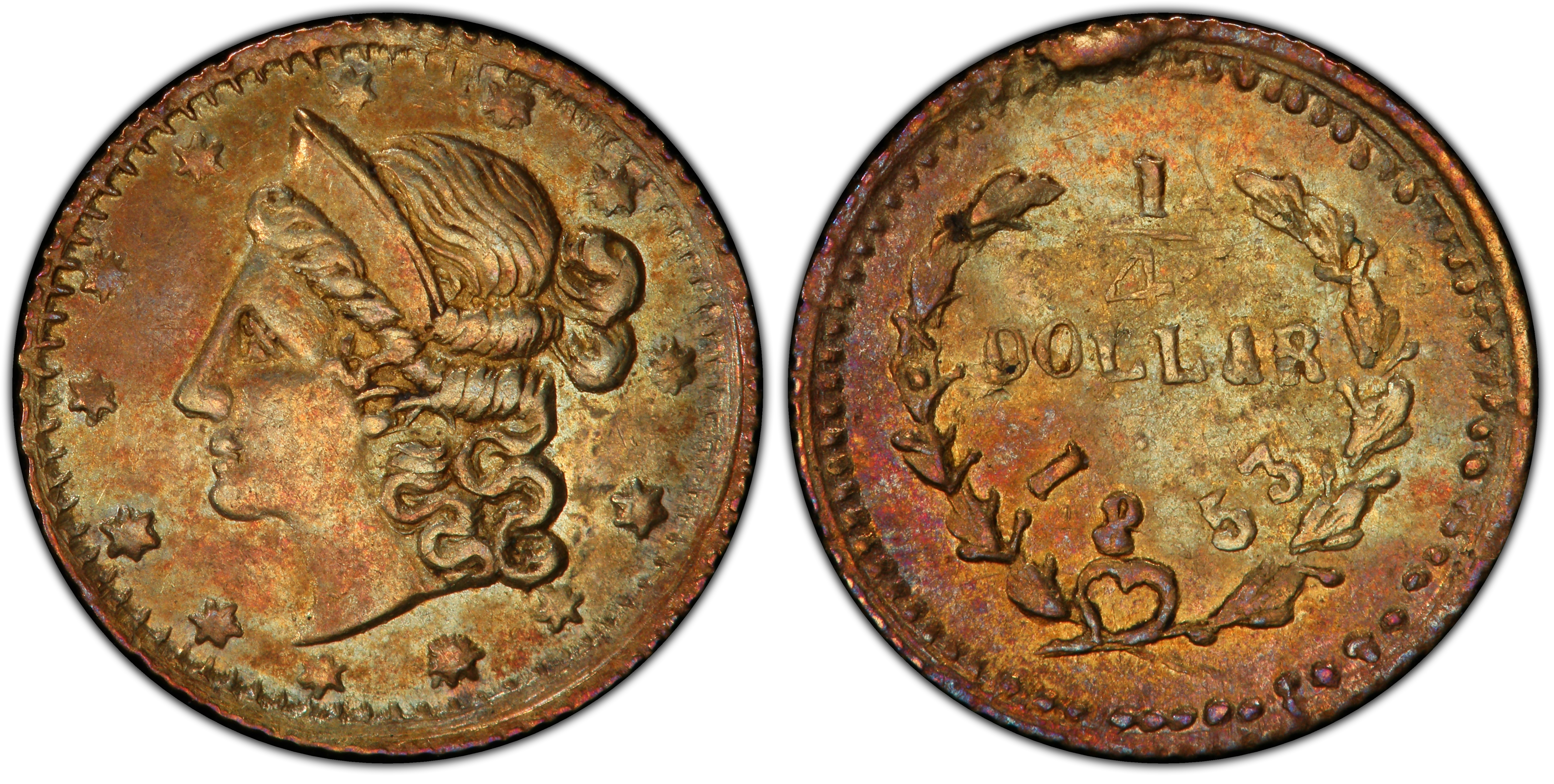 Reason For MintingTo alleviate a severe shortage of small-denomination coinage for everyday commercial transactions in Gold Rush-era California.
