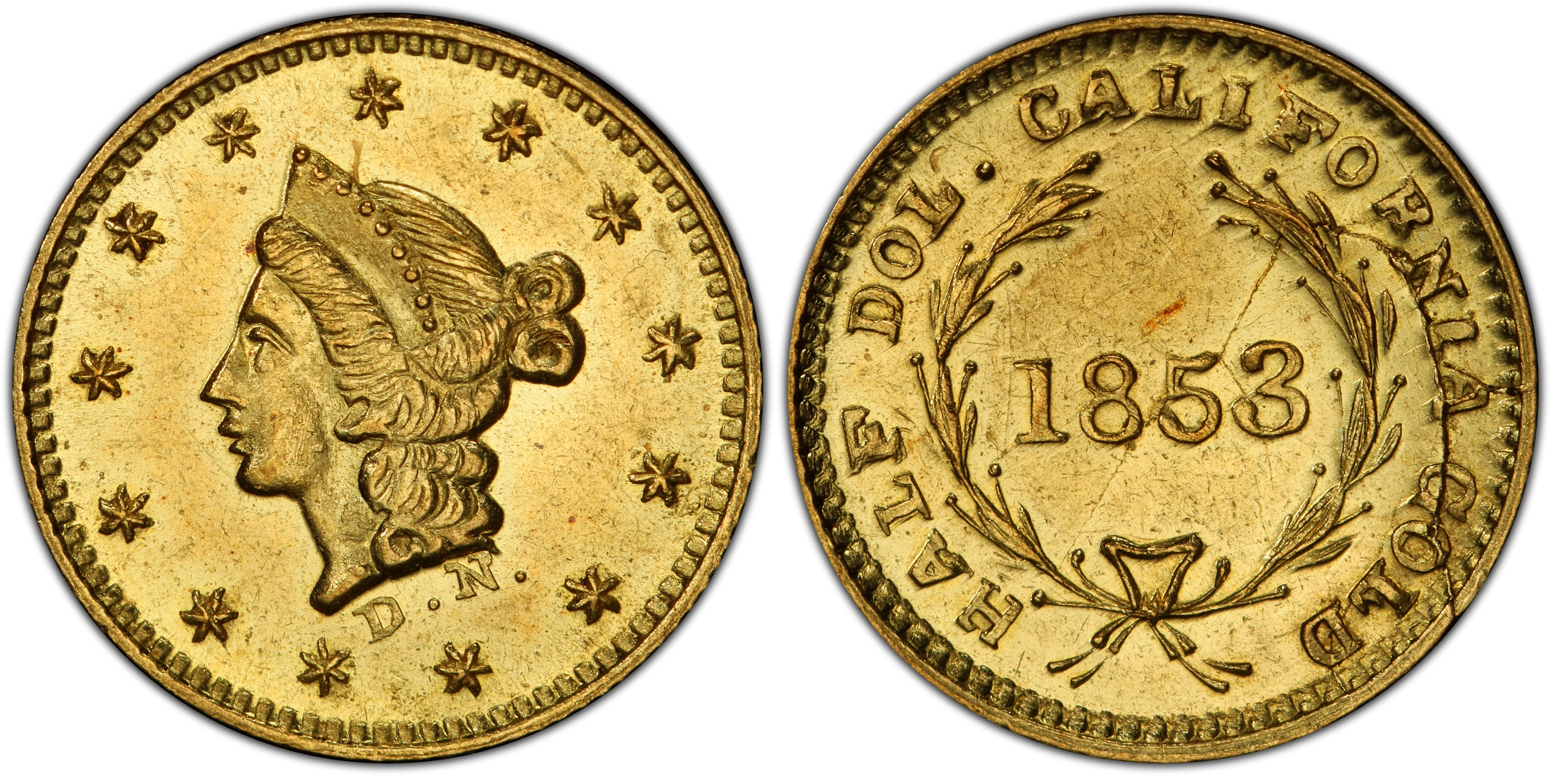 Key VarietiesThe primary variety is the 1853/2 overdate, which characterizes all known examples of BG-409. No significant sub-varieties or die states are widely recognized. As a Period One issue intended for commerce, there are no known patterns, trial pieces, or later-date proof restrikes associated with the BG-409 dies. Collectors should be aware of modern replicas, which are not considered numismatic varieties.