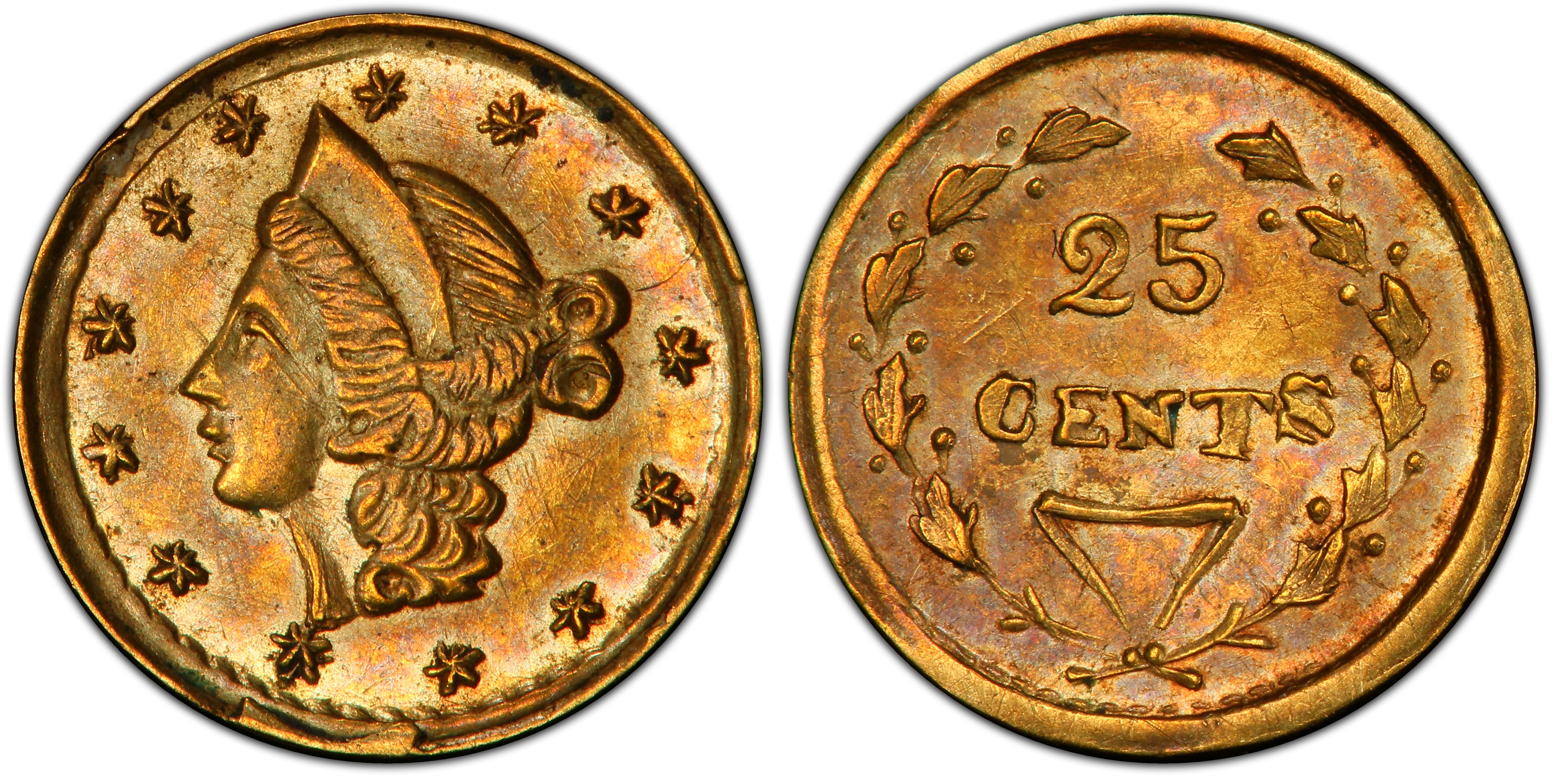 Reason For MintingTo provide a circulating medium for small commercial transactions due to a severe shortage of U.S. government-issued small change in Gold Rush California.
