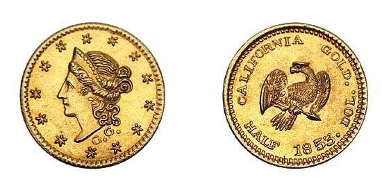 Reverse InscriptionCALIFORNIA GOLD HALF DOL.