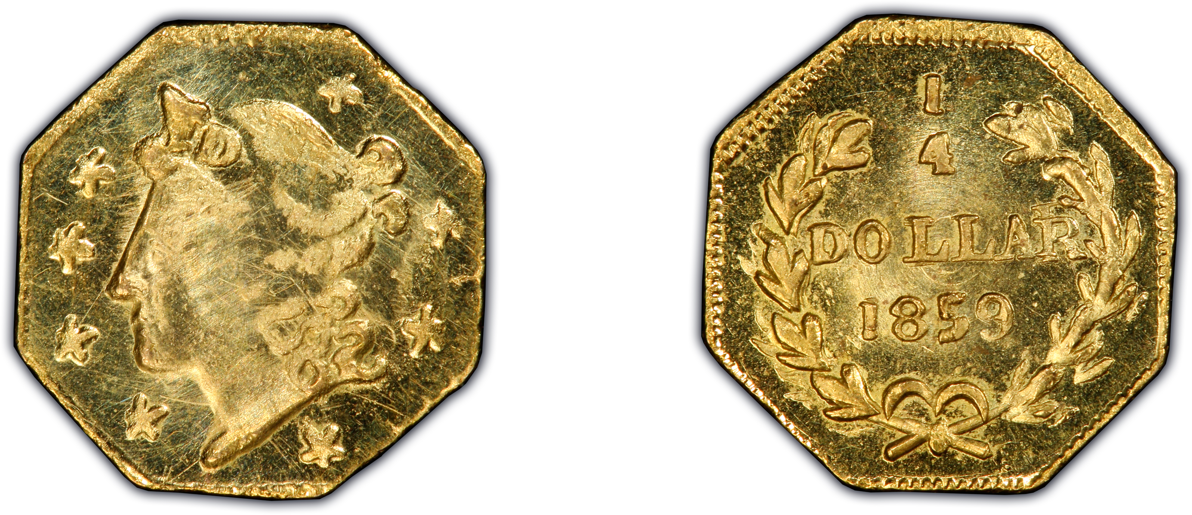 Key VarietiesThe BG-701 is a specific die marriage. No major varieties from the original minting period are known. No special collector restrikes or patterns are recorded for this variety. The primary variations within the broader 1859 octagonal 25C series are the different Breen-Gillio die pairings (e.g., BG-702, BG-703), each with unique engraving characteristics.