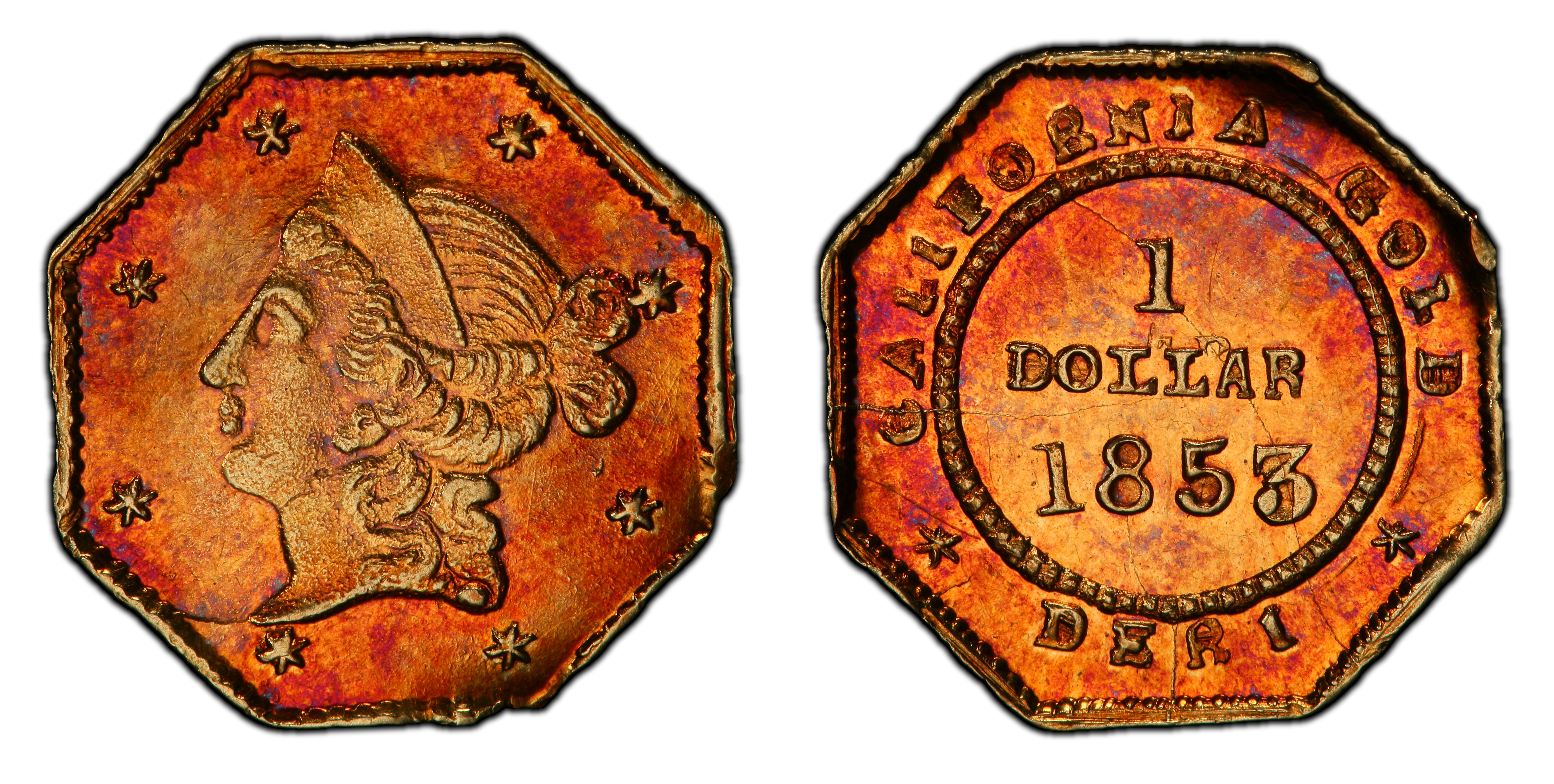 This variety is highly sought after as a genuine 'Period One' circulating issue with a known maker. Its octagonal shape, clear attribution to Deriberpie, and high rarity make it a prized possession for specialists in California gold and territorial coinage.