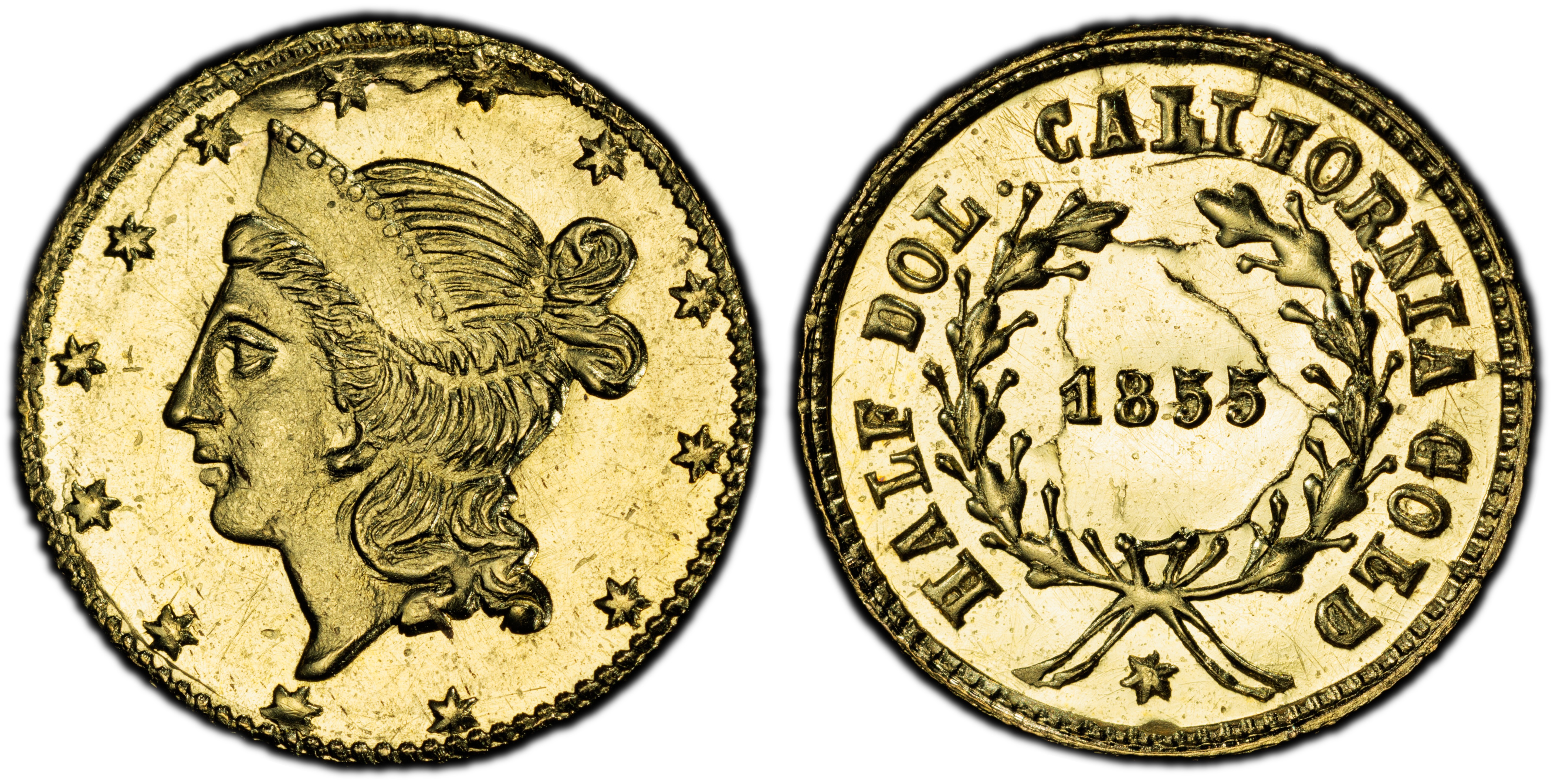 The 1855 Round 50 Cents, cataloged as Breen-Gillio 433, is a numismatic artifact of immense rarity from the zenith of the California Gold Rush. Its creation is rooted in the severe shortage of small-denomination coinage that plagued the booming economy of the West. Following the discovery of gold in 1848, hundreds of thousands of settlers flooded California, bringing with them large quantities of gold dust and nuggets. However, the United States Mint in Philadelphia was distant, and the newly established San Francisco Mint, which opened in 1854, initially focused on larger denominations and could not meet the overwhelming demand for circulating coins. Daily commerce was crippled; a 'pinch' of gold dust, a highly imprecise and unsatisfactory measure, was often used for minor transactions. This created a fertile environment for private minters, typically jewelers and metallurgists in San Francisco, to fill the void. They began striking their own small-denomination gold pieces in quarter, half-dollar, and dollar sizes. These 'Period One' (1852-1857) issues, though often underweight, were accepted in trade out of sheer necessity. The BG-433 is a quintessential example of this phenomenon—a privately manufactured coin intended for circulation. However, its extreme rarity today suggests an exceptionally small original mintage, perhaps representing a trial run or a very brief production from a small, unrecorded maker before ceasing operations. Unlike the later souvenir issues, the BG-433 was born from genuine commercial need, making it a direct link to the day-to-day economic struggles and improvisations of Gold Rush California.