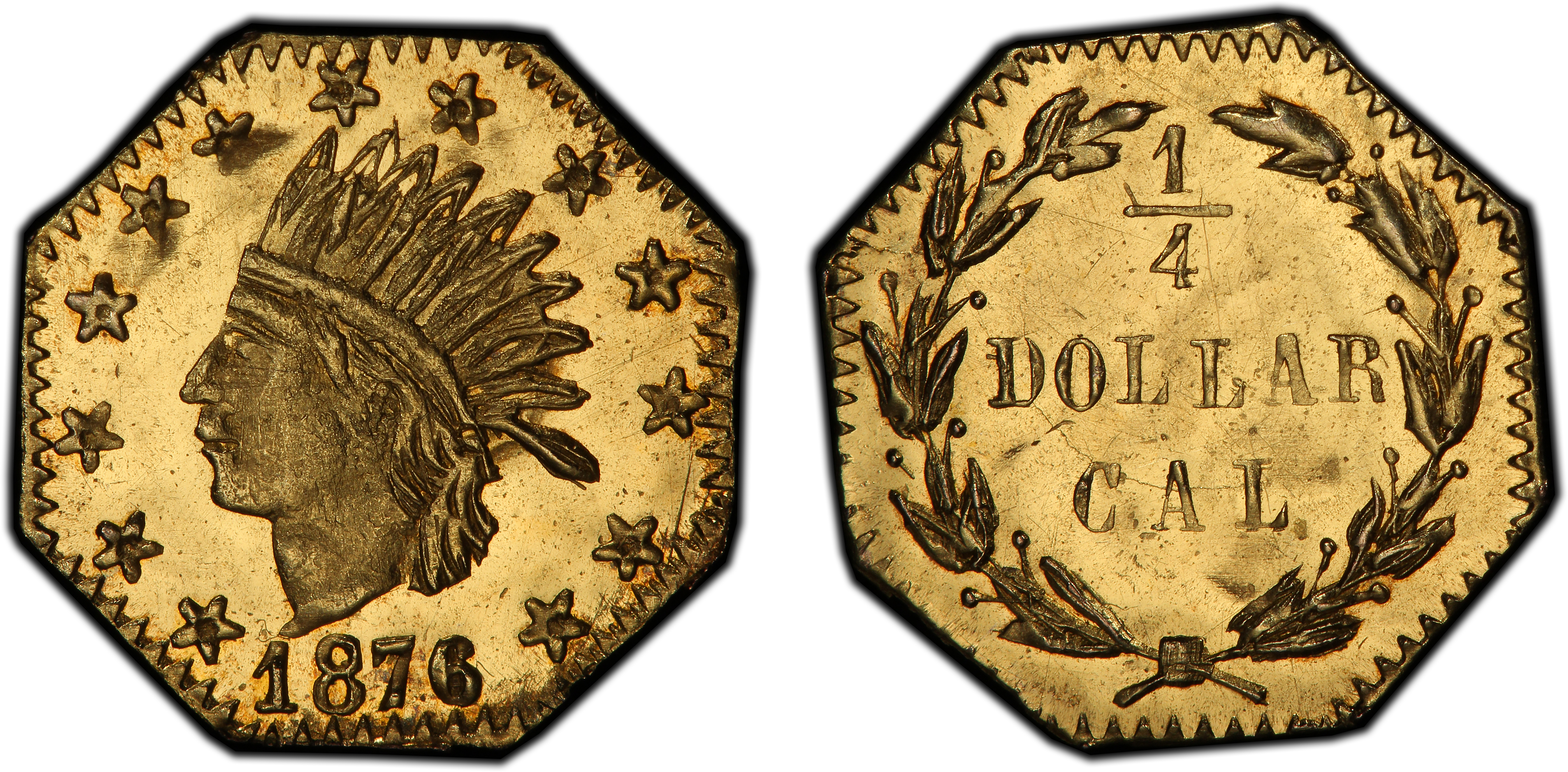 The 1876 BG-786 25 Cent piece emerges from the second major phase of California's private gold coinage, a period numismatists classify as 'Period Two' (1859-1882). Unlike the 'Period One' issues struck out of commercial necessity to alleviate the chronic shortage of small change during the initial Gold Rush boom, the context for these later pieces had shifted dramatically. By the mid-1870s, the San Francisco Mint was in full operation, supplying ample quantities of federal silver and gold coinage for daily transactions. The original impetus for fractional gold had vanished. Instead, these small, often underweight gold tokens were produced primarily as souvenirs, jewelry, and keepsakes. San Francisco had become a major tourist destination, and visitors from the East and Europe were fascinated by the romanticism of the Gold Rush. Jewelers like Herman J. Brand capitalized on this by creating a dazzling variety of miniature gold 'coins' that evoked the frontier spirit. These 'jeweler's issues' were technically illegal following the Private Coinage Act of 1864, but the law was weakly enforced for nearly two decades. Minter-jewelers operated in a grey market, producing pieces that looked enough like coins to be desirable but were understood locally to be tokens. The BG-786, with its popular Indian Head motif, was a classic example of a design intended to appeal to the public's fascination with the American West. Production of these pieces was often crude, employing the 'hammer method' where dies were struck by hand, leading to variability in strike quality. However, this production was not without risk. The U.S. Secret Service, under its zealous chief James J. Brooks, viewed these pieces as a potential threat for fraud. Brooks initiated a crackdown in the late 1870s and early 1880s, investigating and pressuring jewelers to cease production. This pressure eventually culminated in the end of fractional gold production by 1883, making the 1876 BG-786 one of the later-dated issues from this fascinating and legally ambiguous chapter of American numismatics. Its existence is a testament not to a shortage of currency, but to a clever commercial response to the enduring legacy of the Gold Rush.
