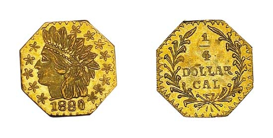 The 1880 25C BG-799X is a fascinating product of the twilight years of America's private coinage era, specifically classified within 'Period Two' (1859-1882) of California Fractional Gold production. By 1880, the chaotic, early days of the Gold Rush, which had necessitated private minters to strike coins for commerce due to a severe shortage of federal small change, were long past. The San Francisco Mint, operating since 1854, now produced ample coinage for the region's needs. The motivation for producing these tiny gold pieces had shifted entirely from commerce to collectibles. They were no longer essential monetary instruments but rather souvenirs, keepsakes, and jewelry items that capitalized on the romantic allure of the California Gold Rush. The Coinage Act of 1864 had explicitly forbidden private coinage, but enforcement by the Secret Service was inconsistent and primarily focused on pieces intended to deceive or circulate widely. Jewelers and private manufacturers continued to produce small, denominated 'tokens' by exploiting this lax enforcement, often backdating them or, in this case, producing them far from California. Research by numismatists Robert Leonard, Bob Lande, and Ken Glickman, documented in the Breen-Gillio reference, uncovered that F.H. Noble & Co., a manufacturing jeweler based in Chicago, was the source of BG-799X and related varieties. A Secret Service investigation in 1881 confirmed the company was striking these 1880-dated pieces. This geographic origin is significant, illustrating that the market for 'California Gold' souvenirs was national. These pieces were never intended for circulation in the boomtowns of California; instead, they were marketed to a public enchanted by the lore of the West. Their low gold content and status as tokens rather than true coins reflect the legal and economic realities of the period, a stark contrast to the high-purity, circulating issues of 'Period One.'
