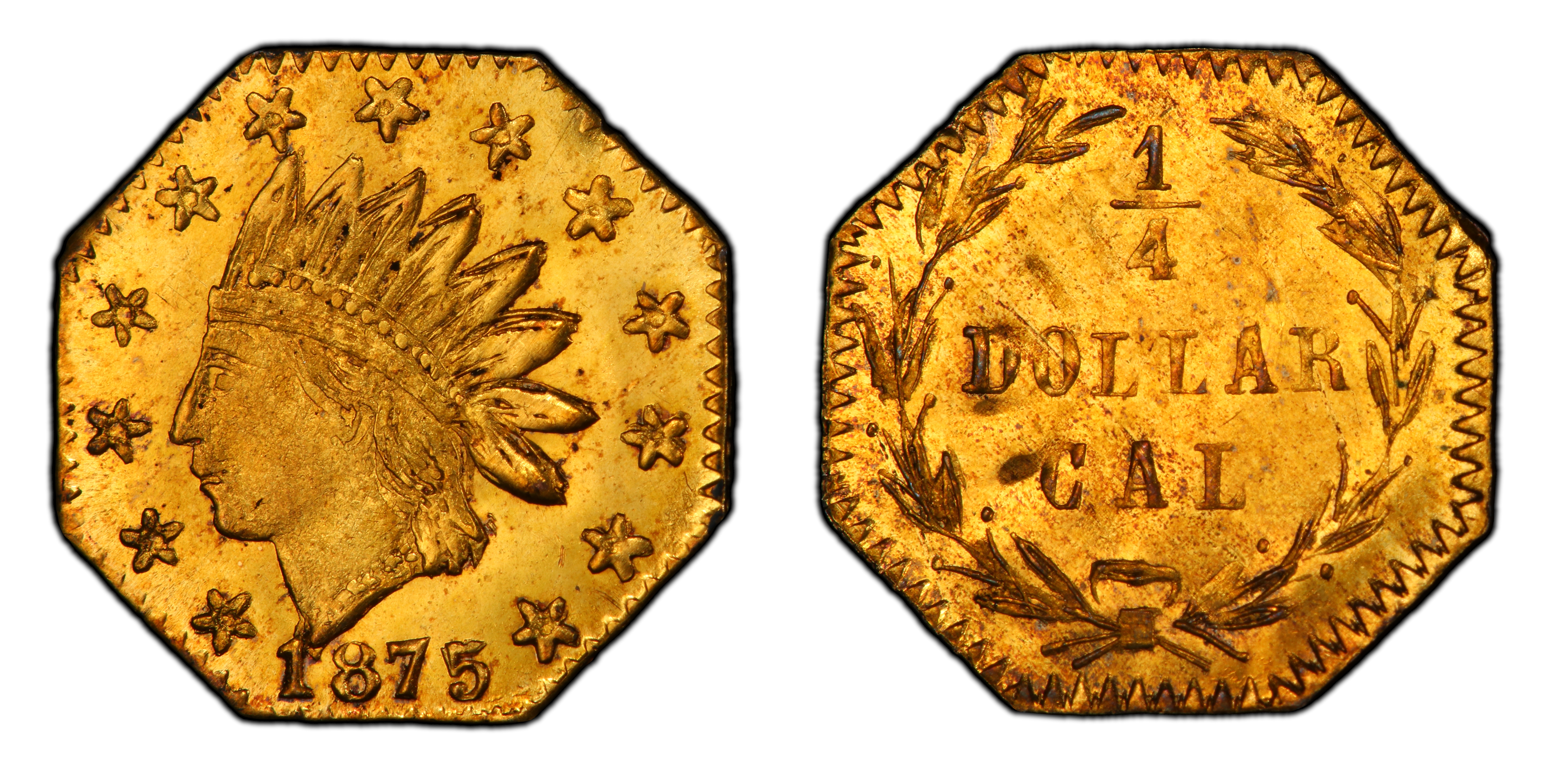 The 1875 G25C BG-784 is a product of the second period (1859-1882) of California Fractional Gold production, an era often dominated by pieces colloquially known as 'jeweler's issues.' Following the initial frenzy of the Gold Rush, the acute shortage of small change persisted in California's booming economy. Federal coinage was still scarce on the West Coast, making daily transactions for low-value goods and services incredibly difficult. While the initial wave of fractional gold from 1852-1856 was a direct and necessary response to this coin shortage, the pieces struck later, like this 1875 example, served a dual purpose. They continued to facilitate commerce but also catered to a growing tourist and souvenir market in San Francisco. By the 1870s, the city was a major commercial hub, and these tiny gold coins were popular keepsakes. Unlike the earlier, often anonymous issues, many pieces from this second period can be attributed to specific jewelers who possessed the requisite skills for die sinking and striking. Robert B. Gray & Co. is the likely producer of the BG-784, a firm known for its jewelry and engraving work in San Francisco. These pieces were typically struck by hand, using a hammer to strike the top die, which resulted in significant variations in strike quality. The gold content was often less than the face value would imply, a common characteristic of jeweler's issues. The passage of the Coinage Act of 1864 made private coinage illegal, but enforcement was lax on the West Coast, allowing these small-denomination tokens to be produced until the early 1880s when federal authorities finally cracked down on their manufacture, bringing an end to this fascinating chapter of American numismatic history.