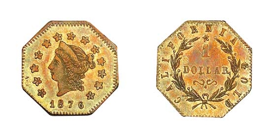 Reverse Inscription1 DOLLAR 1876 CALIFORNIA GOLD