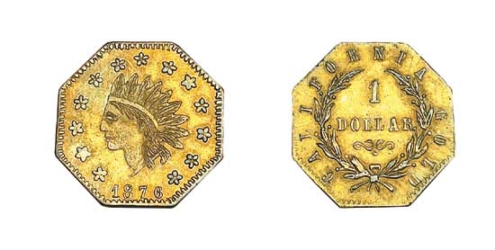 This variety is highly sought after due to its extreme rarity and attractive octagonal Indian Head design. As a dated Centennial year issue, it also carries historical appeal. Its status as a 'Period Two' souvenir piece makes it an essential component for specialists seeking to tell the complete story of California's private gold coinage.