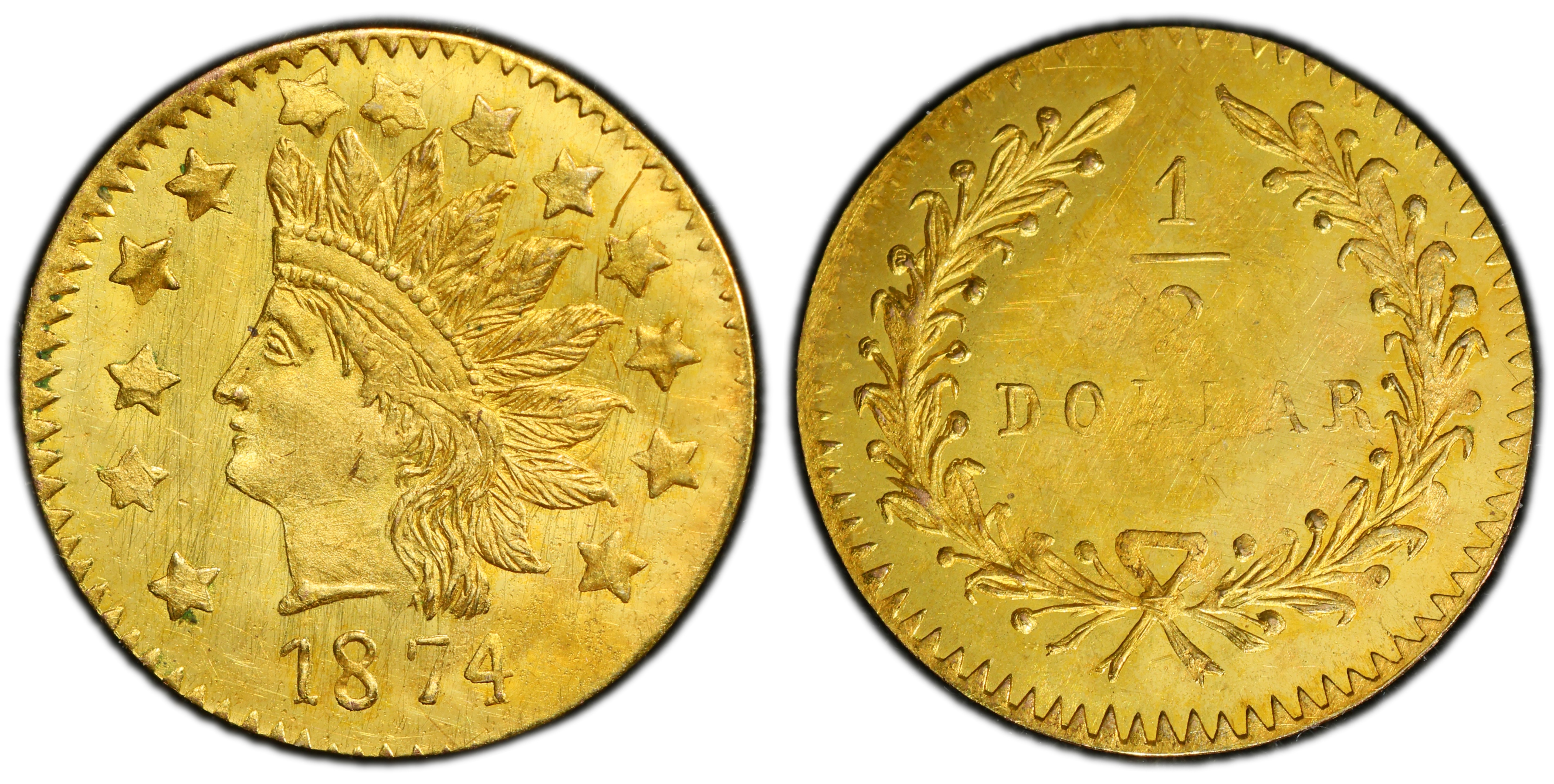 Mint State CharacteristicsUncirculated examples of BG-1072 are noted for often having a weak strike, with blending or lack of detail on the central devices (Indian's face, center of the wreath). High-grade specimens display a radiant, lemon-gold luster. Due to the softness of the gold and the crude production methods, even Mint State coins will typically show some minor planchet flaws or contact marks; the key is that they are not signs of circulation wear.