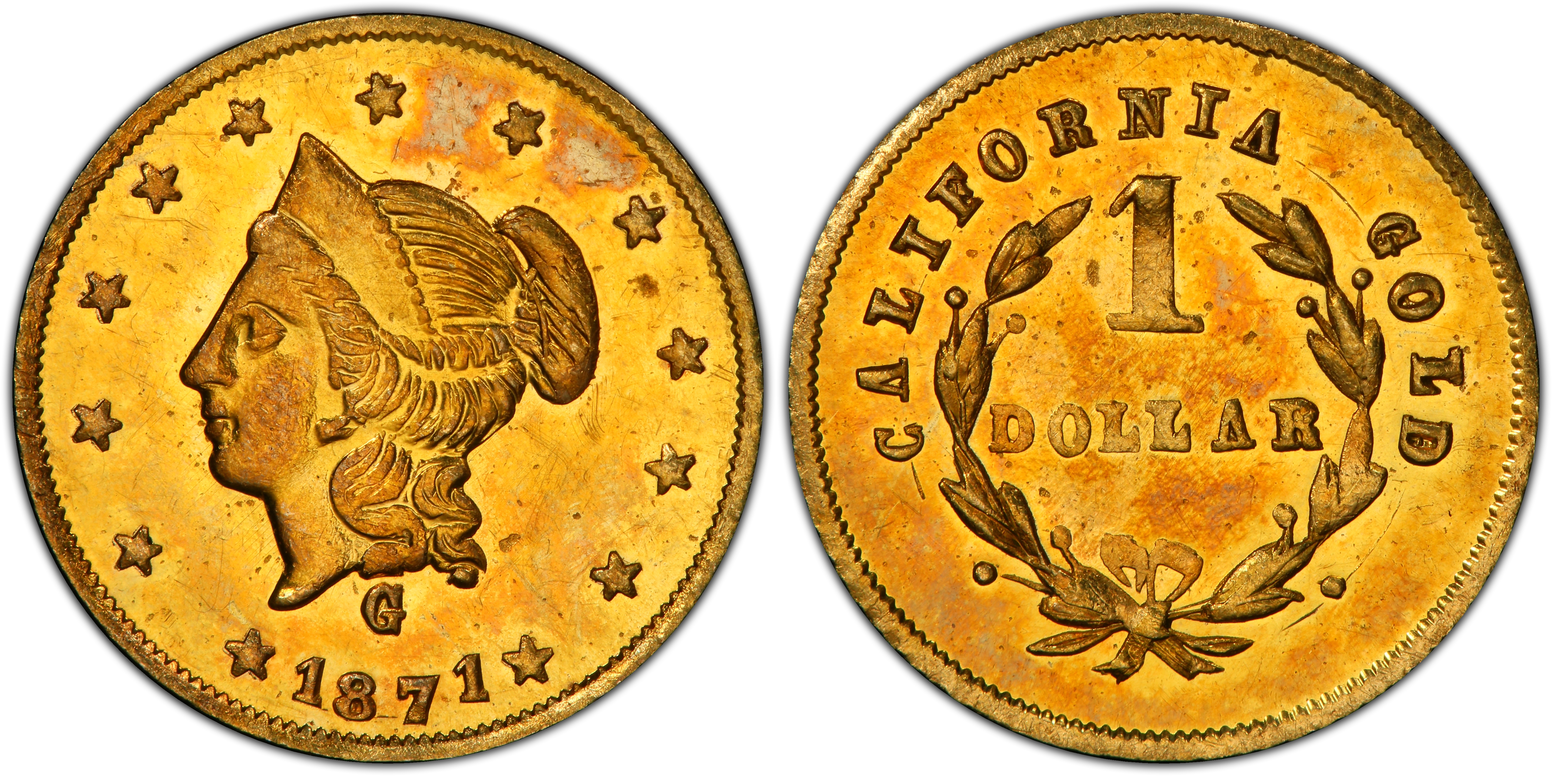 The 1871 G$1 BG-1204 is a quintessential example of a 'Period Two' California Fractional Gold piece, a series whose purpose had evolved significantly from its origins. By 1871, the initial, frantic days of the Gold Rush were over, and California's economy had matured. The acute shortage of small change that had prompted the creation of the first fractional gold pieces ('Period One,' 1852-1857) had been largely resolved by the output of the San Francisco Mint. Consequently, the private minting of fractional gold shifted from a necessity to a novelty. This era, from 1859 to 1882, was dominated by manufacturing jewelers who produced these miniature gold coins primarily as souvenirs, keepsakes, and curios for tourists and locals nostalgic for the Gold Rush era. These pieces were intentionally struck underweight, containing less than a dollar's worth of gold, making them profitable tokens rather than circulating currency. The BG-1204 variety is traced to a pivotal moment in the lineage of San Francisco jewelers. Robert B. Gray, who had purchased the business of pioneer minter Antoine Louis Nouizillet, sold his own operation in 1871 to the Levison Brothers, Herman and Jacob, who operated as the California Jewelry Company. The dies for BG-1204 were likely produced and used by them during this transitional year. This historical context is vital; the coin was never intended to be a monetary instrument but rather a commercial product, a memento of California's golden identity. The enforcement of the Private Coinage Act of 1864 was inconsistent, but pressure from the Secret Service was mounting around this time, leading many producers to be discreet. These 'jeweler's issues' are often characterized by more imaginative, if sometimes cruder, designs compared to the utilitarian style of Period One issues. The BG-1204, with its classic Liberty motif, represents a popular and readily salable design, perfect for its intended market. Its survival in relatively high numbers compared to earlier issues attests to its success as a collectible souvenir that was saved rather than spent.