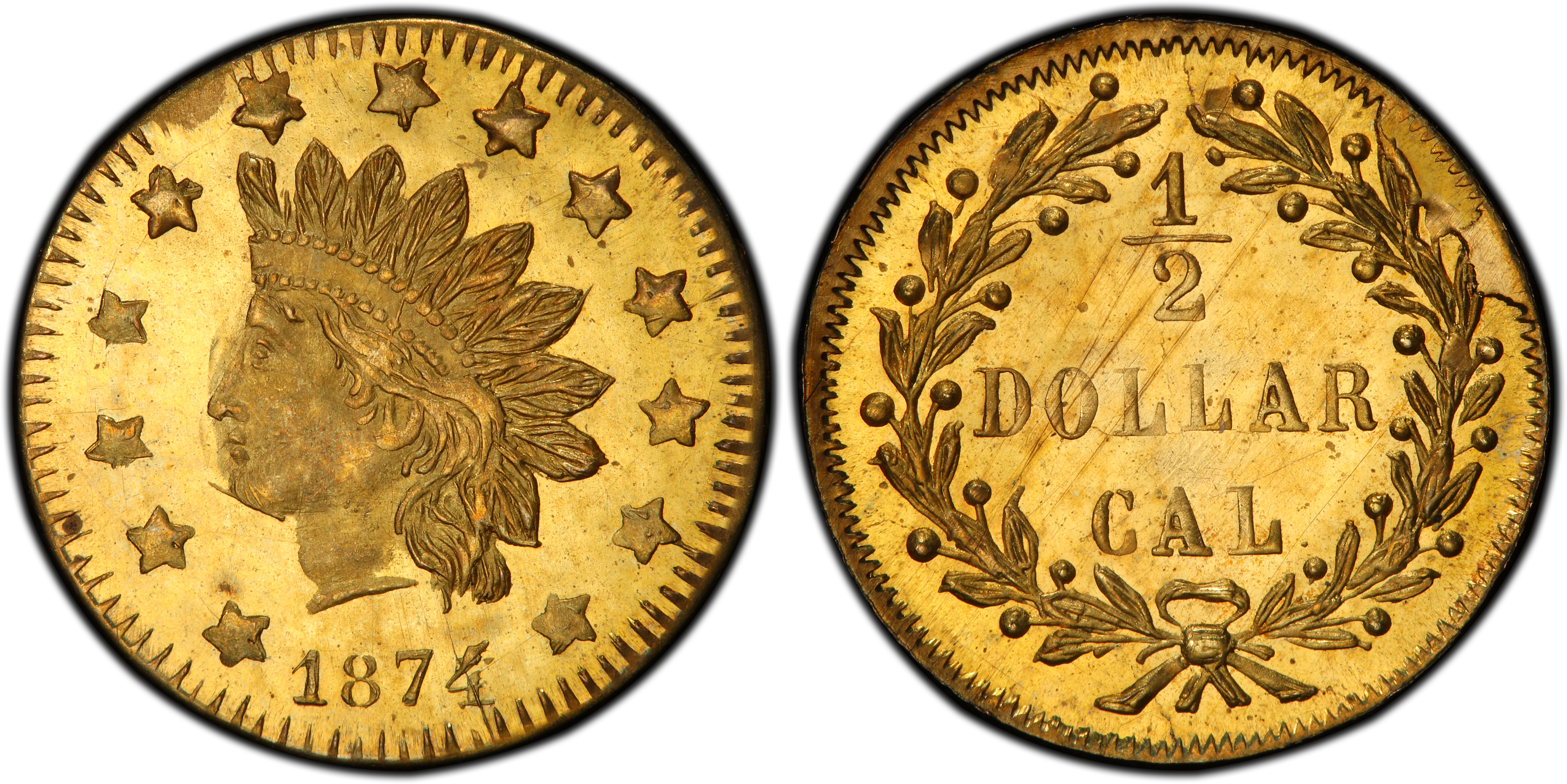 This variety is highly sought after by specialists for its dramatic and easily visible 1874/3 overdate. It combines the popularity of the Indian Head motif with a significant die variety, making it a key target for collectors of California Fractional Gold and die variety enthusiasts alike. Its status as a Period Three issue makes it more accessible than the earlier, rarer pieces, offering a tangible link to San Francisco's post-Gold Rush history.