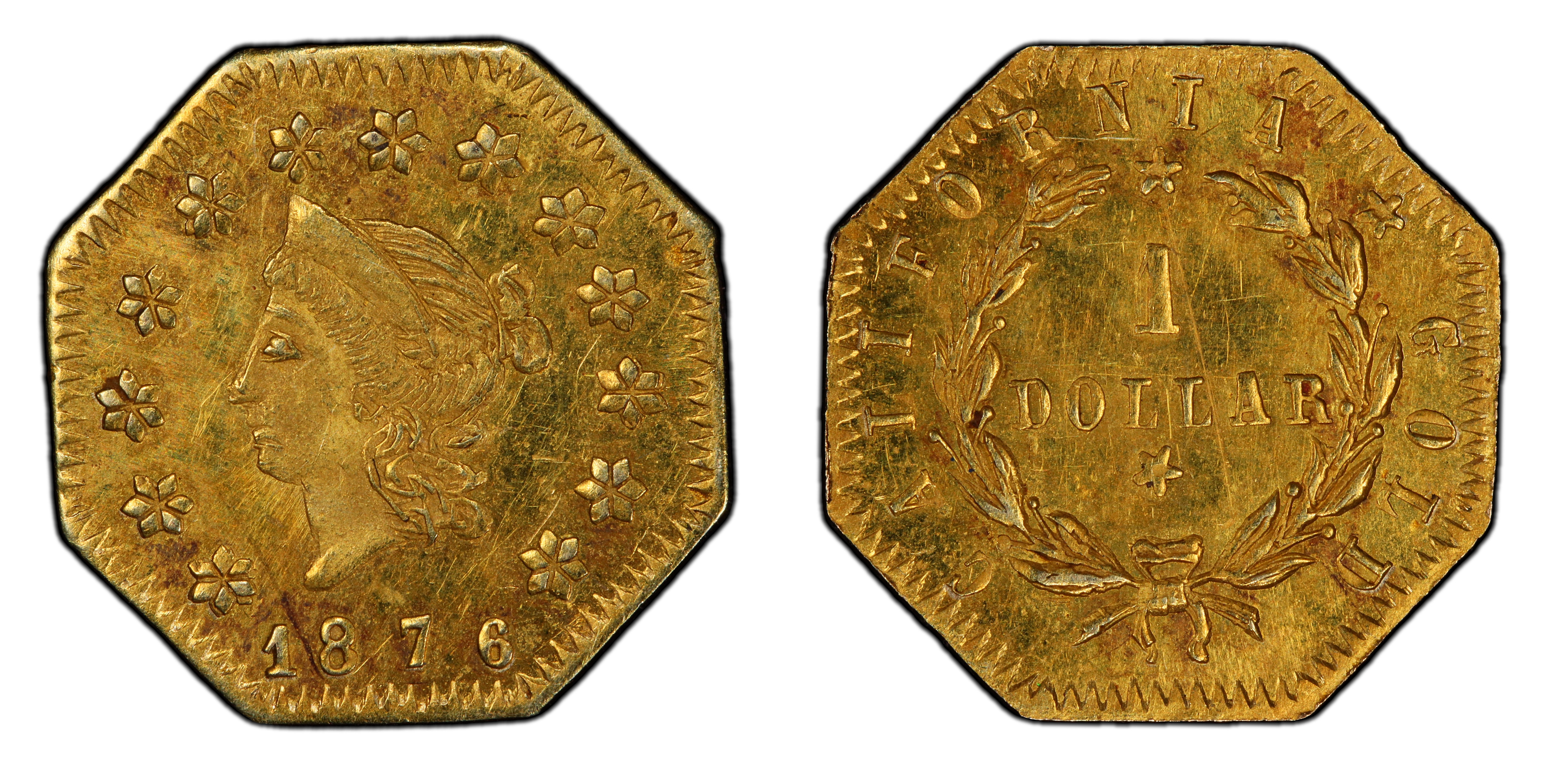 The 1876 G$1 BG-1117 is a product of the second period of California Fractional Gold production (1859-1882), often termed the 'Jeweler's Period.' Unlike the earlier 'Period One' issues struck out of commercial necessity to alleviate a chronic shortage of small change during the Gold Rush, these later pieces were created under different circumstances. By the mid-1870s, the United States Mint in San Francisco was in full operation, and the acute need for private coinage had subsided. The Coinage Act of 1864 had officially made private minting illegal, but it was not strictly enforced by the Secret Service in California until 1883. This legal gray area allowed numerous jewelers and assayers, primarily in San Francisco, to continue producing these small-denomination gold pieces. However, their purpose had shifted. They were no longer primarily instruments of commerce but were instead manufactured as souvenirs, keepsakes for tourists, and novelty items. The 1876 date coincides with the Centennial Exposition in Philadelphia, a nationwide celebration that spurred the creation of memorabilia of all kinds, and it's plausible this piece was part of that trend. These 'jeweler's issues' were typically underweight for their face value and often of a lower fineness than official U.S. coinage, facts well-understood by the contemporary public who accepted them as tokens rather than true money. Their production was crude, often using a hammer-striking method, resulting in inconsistent strike quality. The anonymity of the minter is characteristic of the period, as many jewelers produced them without specific identifying marks. Today, the BG-1117 is a numismatic artifact not of the Gold Rush's frantic necessity, but of its long and romanticized legacy in American culture.