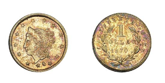 Reason For MintingTo be sold as a popular souvenir or jewelry item to tourists and locals in post-Gold Rush San Francisco.