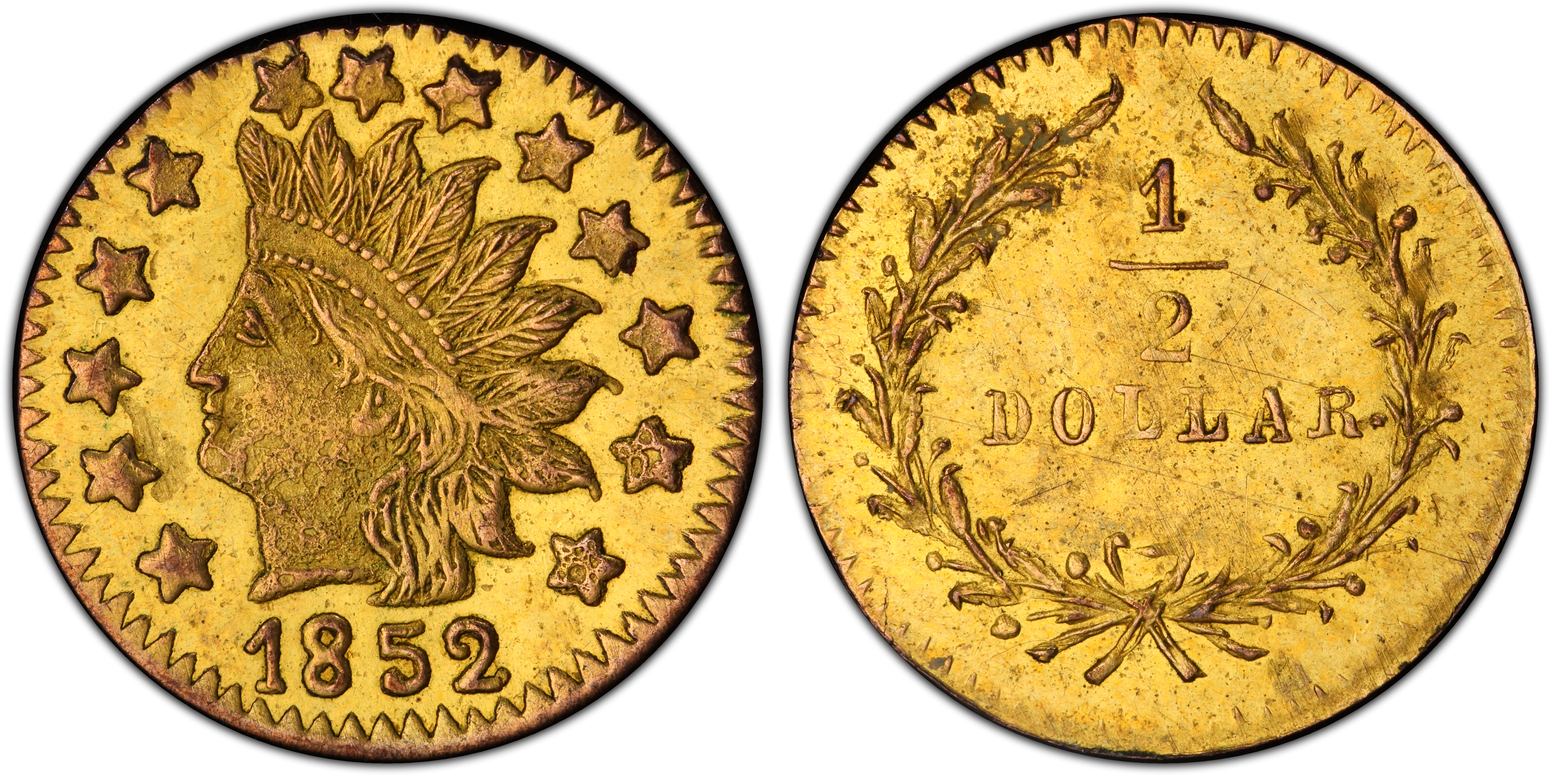 The 1852 BG-1075 50-cent piece is a quintessential artifact of the California Gold Rush, a tangible solution to one of the era's most pressing economic problems: a severe deficiency of small-denomination coinage. When gold was discovered at Sutter's Mill in 1848, the ensuing flood of prospectors and merchants created a booming economy almost overnight. However, this commerce was severely hampered by the lack of circulating money for everyday transactions. Gold dust, weighed in 'pinches,' was an imprecise and often contentious medium of exchange, while the smallest denomination federal coin readily available was often the silver dollar or gold quarter eagle, far too large for minor purchases. Into this monetary vacuum stepped enterprising jewelers and metalsmiths, many of whom were French immigrants who had brought their craft to the burgeoning metropolis of San Francisco. These artisans began striking their own small-denomination coins from native California gold. The earliest of these, known to numismatists as 'Period One' issues (1852-1857), were created not as souvenirs but as a genuine, albeit extralegal, circulating medium. The BG-1075 is a prime example of these necessary and widely accepted coins. Struck by Antoine Louis Nouizillet, these pieces were hammered out by hand or with rudimentary screw presses, resulting in variable strike quality. Despite often being slightly underweight compared to their stated face value, their utility far outweighed any intrinsic deficiency in the gold-rich, inflation-heavy economy of Gold Rush California. These tiny gold coins facilitated commerce, allowing a miner to buy a drink or a loaf of bread without resorting to the clumsy system of gold dust. Their acceptance is evidenced by the circulation wear seen on many surviving examples. The eventual establishment and full-scale operation of the San Francisco Mint in the mid-1850s gradually introduced a sufficient supply of federal coinage, rendering the private issues obsolete. Most were subsequently melted, lost, or damaged, contributing to their extreme rarity today. The BG-1075 is not merely a coin; it is a direct link to the daily life and struggles of the 'Forty-Niners' and a testament to the private ingenuity that sustained an economy on the nation's frontier.