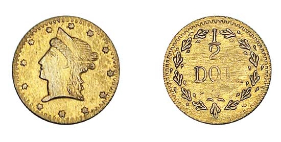 Mint State CharacteristicsAn uncirculated (MS) BG-1078 is defined by its characteristic weakness. The centers are invariably soft, with Liberty's cheek and the '1/2' on the reverse showing little to no detail. Luster is typically subdued and satiny rather than flashy. The quality of a Mint State piece is judged by the sharpness of the peripheral devices (stars and wreath) and the cleanliness of the surfaces. Small planchet flaws or adjustment marks are not uncommon for these private issues.