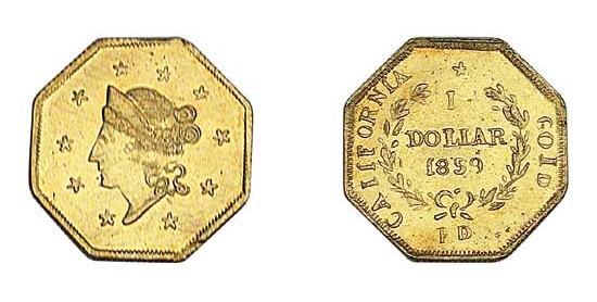 Historical SignificanceThe BG-1101 is a prime example of privately issued coinage filling a crucial role in a developing economy where official currency was scarce. It reflects the adaptation of popular national design motifs (the Indian Head) to local, utilitarian coinage and serves as a significant artifact of California's unique monetary system during a pivotal period of its growth.