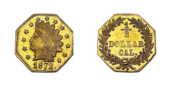 The 1872 BG-938 50 Cent piece emerges from the second great era of California Fractional Gold, a period numismatically distinct from the initial 'Period One' (1852-1857) issues born of pure necessity. By the early 1870s, the acute shortage of small change that had plagued Gold Rush California had largely been rectified by the steady output of the U.S. Mint in San Francisco, which opened in 1854. The raison d'être for fractional gold had fundamentally shifted from utilitarian commerce to novelty and souvenir trade. These later pieces, often termed 'jeweler's issues,' were crafted by San Francisco's skilled metalworkers—many of them French immigrants—who recognized a burgeoning market for mementos of the Golden State. Tourists, merchants, and even locals sought these miniature gold coins for use in jewelry, as keepsakes, or as symbols of California's unique gold-based economy. The production of these pieces occupied a legally gray area. The Coinage Act of 1864 had explicitly forbidden private coinage, but the law was not aggressively enforced against these tiny, low-value tokens until the Secret Service, concerned about potential fraud, began a crackdown in the early 1880s. Thus, the minters of 1872 operated with a degree of impunity, creating a wide variety of designs, including the popular Indian Head motif seen on BG-938, which mimicked the design of the new federal copper-nickel cent. These pieces were not intended to compete with federal coinage but rather to satisfy a commercial demand for tangible, affordable souvenirs made of the state's most famous product. They were typically struck using the 'hammer method'—a top die struck with a sledgehammer onto a planchet resting on a bottom die—a process that accounts for the often-uneven strikes and unique character of each piece. The BG-938, with its distinctive octagonal shape and artistic Indian Head, stands as a prime example of this fascinating chapter in American enterprise, a testament to a time when private ingenuity continued to convert California's gold into miniature works of art long after their official monetary need had passed.