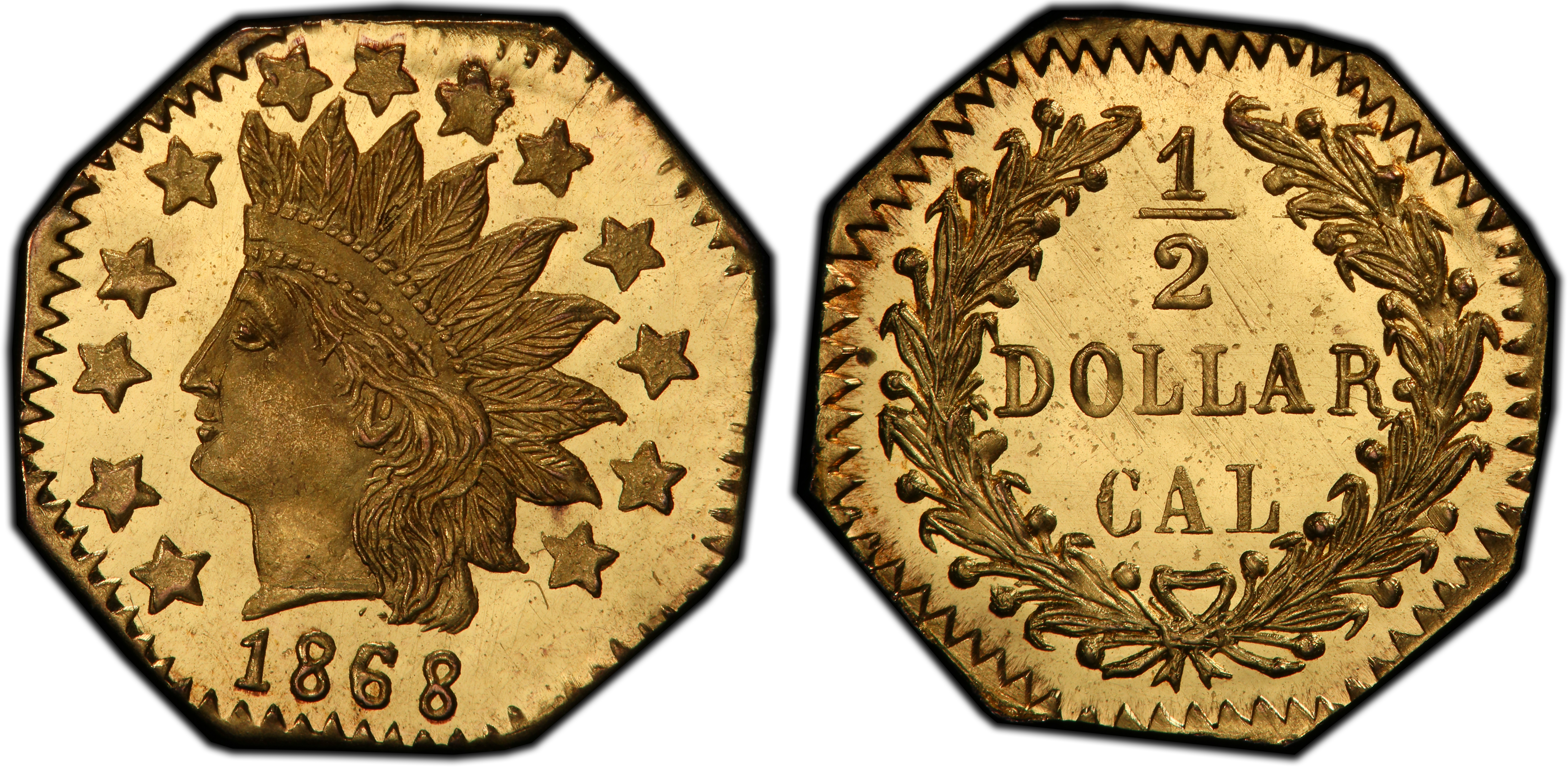 The 1868 BG-960 fifty-cent piece emerges from the second major phase of California Fractional Gold production, a period numismatically distinct from the initial, necessity-driven issues of the early Gold Rush. By the late 1860s, the acute shortage of small denomination coinage that had plagued California a decade and a half earlier had been largely resolved by the output of the United States Mint in San Francisco, which began operations in 1854. The raison d'ĂȘtre for private coinage had shifted dramatically from commerce to curiosity. These later 'Period Two' (1858-1882) issues, as defined by Walter Breen and Ronald J. Gillio, were primarily struck by jewelers not to facilitate trade, but to sell as souvenirs and keepsakes. The allure of the 'Golden State' and the romance of the Gold Rush created a robust market for these tiny, intricate gold tokens among tourists, merchants, and those back East. The Coinage Act of 1864 had explicitly forbidden private coinage, but enforcement in the West was inconsistent, allowing this souvenir trade to flourish until a Secret Service crackdown in the early 1880s. The BG-960 was struck in this environment. Its production was likely a small-scale, hand-operated affair within a San Francisco jeweler's shop. Unlike their Period One predecessors, which often contained gold close to their face value, Period Two pieces were notoriously underweight and sometimes made of debased gold, reinforcing their nature as novelties rather than legitimate currency. The Indian Head motif, popular in American coinage of the era, was adopted to enhance their appeal. The existence of prooflike (PL) examples, like the one specified in the user request, underscores their non-circulating intent; they were meant to be admired for their shiny, reflective surfaces, a quality that would be instantly lost in circulation.