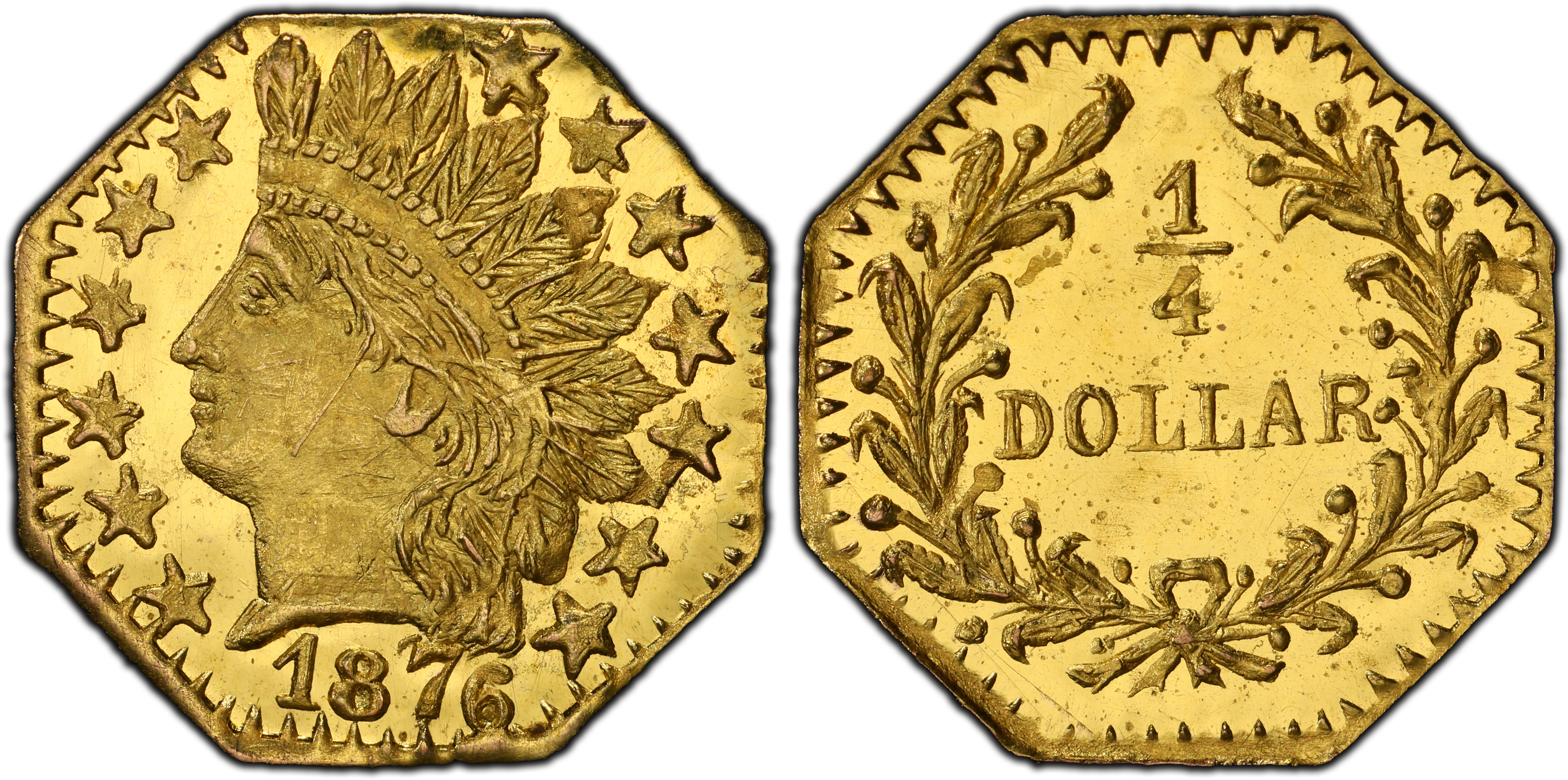 The 1876 25-cent piece, cataloged as Breen-Gillio 799F, is a fascinating product of the latter phase of California's private minting era, known as 'Period Two' or the 'Jewelers' Issue' period (1858-1882). By the mid-1870s, the initial, desperate need for circulating small change that drove the creation of the first fractional gold pieces in the early 1850s had long since been met by the San Francisco Mint. These later issues were produced not as essential currency but as charming mementos and souvenirs of the now-legendary Gold Rush. Enterprising jewelers, primarily in San Francisco, catered to a burgeoning tourist trade and a national fascination with the 'Wild West' by striking these miniature gold coins. While the Coinage Act of 1864 had made private coinage illegal, the law was not aggressively enforced against these small, low-value pieces until later. The minter of the BG-799 series, Christopher Ferdinand Mohrig, operated in this legally gray environment. His timing, however, proved unfortunate. On August 10, 1876, just as the nation was celebrating its centennial, U.S. Secret Service agents arrested Mohrig for violating the 1864 Act. His coining equipment, dies, and remaining inventory of fractional gold pieces were confiscated and subsequently destroyed. This abrupt end to his operation is the primary reason for the rarity of his 1876-dated issues, including the BG-799F. These coins were never intended for widespread circulation; their intrinsic value was significantly less than their face value, a common trait of Jewelers' Issues. Instead, they were keepsakes. The DMPL (Deep Mirror Prooflike) designation on select survivors indicates they were struck with freshly polished dies, creating a beautiful contrast between mirrored fields and frosted devices, an aesthetic flair clearly aimed at collectors and tourists rather than merchants. The BG-799F represents the final, dramatic chapter of one of the last private minters of California Fractional Gold, a piece of numismatic history frozen at the very moment federal enforcement brought the era to a close.