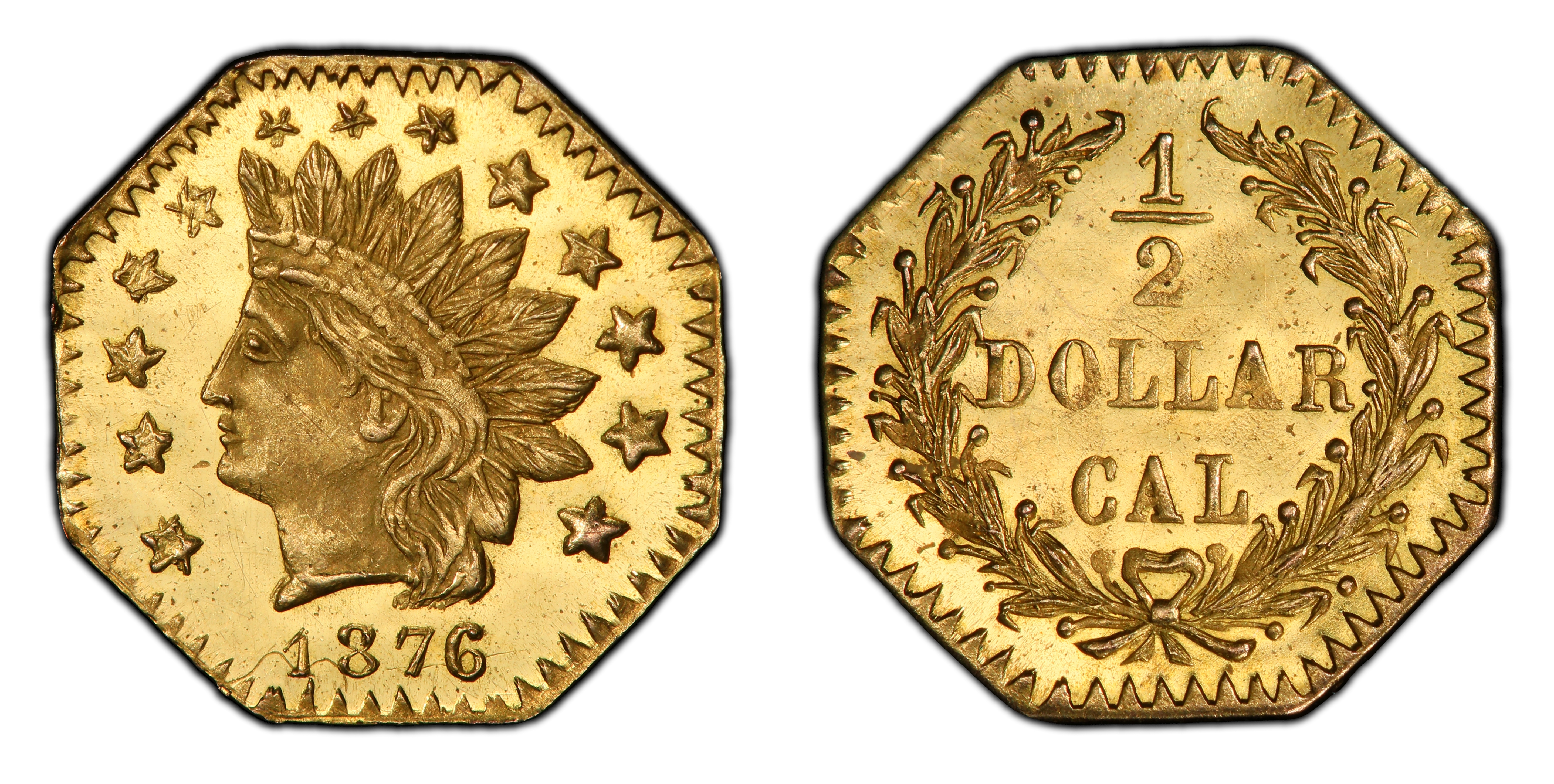 The 1876 BG-949 50 Cents is a quintessential example of 'Period Two' California Fractional Gold. By the mid-1870s, the initial impetus for these tiny gold coins—a severe shortage of small-denomination federal coinage during the Gold Rush—had long since passed. The San Francisco Mint, operating since 1854, was producing ample quantities of silver and minor coins, obviating any commercial need for private fractional gold. Instead, the production of these pieces had shifted entirely to serve the burgeoning tourist and souvenir market. Jewelers in San Francisco and other locales recognized the romantic appeal of the Gold Rush and began manufacturing these miniature gold pieces as mementos and keepsakes for visitors. Unlike the 'Period One' issues (1852-1857), which were generally of high gold content and intended for circulation, Period Two pieces were often underweight, of lower fineness, or even just gold-plated base metal, reflecting their non-monetary purpose. The Act of 1864 had explicitly forbidden private coinage, but enforcement was lax until the early 1880s, allowing this souvenir trade to flourish. The makers of BG-949, like most Period Two minters, remain anonymous. They were likely jewelers who usedcrude but effective coining methods, such as the 'hammer method,' where a top die was struck with a sledgehammer onto a planchet resting on a bottom die, often resulting in inconsistent strike quality. The 'PL' (Prooflike) designation indicates that some examples were struck using polished dies on polished planchets, creating a mirrored finish designed to enhance their visual appeal for collectors and tourists. These pieces were never intended to circulate as money but were sold as charming reminders of California's golden heritage, a practice that continued until the Secret Service finally cracked down on all private issues in 1882.