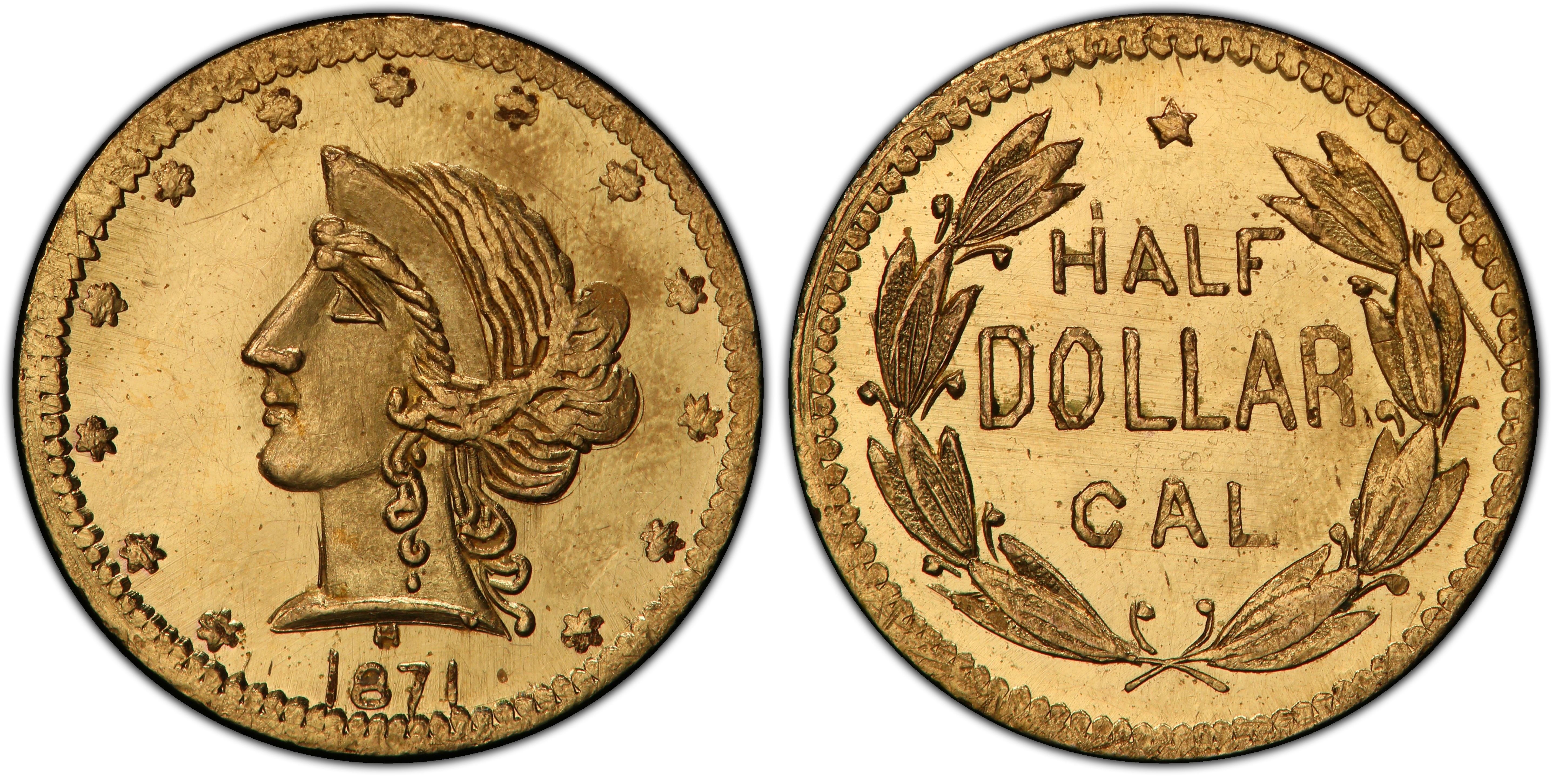 The 1871-H 50 Cents, cataloged as Breen-Gillio 1046, emerged from the second period of California Fractional Gold production (1856-1882), a fascinating and complex chapter in American numismatics. By the early 1870s, the initial frenzy of the Gold Rush had subsided, but California's economy remained dynamic and distinct from the rest of the nation. The official scarcity of small denomination coinage, a persistent issue since the 1850s, was exacerbated by the economic effects of the Civil War, which had caused federal silver and copper coins to be hoarded nationwide. In the West, where gold was king and paper money was met with suspicion, this 'small change' problem was particularly acute. Jewelers and private minters, who had begun producing tiny gold quarter, half-dollar, and dollar tokens in the 1850s to facilitate commerce, saw a renewed, if somewhat altered, demand. These later-period fractionals were less a direct response to a desperate need for circulating currency and more a popular expression of regional identity, functioning as souvenirs, keepsakes, and jewelry items, while still occasionally serving in commercial transactions. Unlike the earlier, cruder issues, the pieces from the 1870s often exhibited a higher degree of artistry and technical refinement, reflecting the maturation of the private minting industry in San Francisco. The 'H' mintmark on BG-1046 is attributed, though not with absolute certainty, to the firm of Herman J. Brand and Herman K. Hahn, jewelers and watchmakers who operated in San Francisco. Their production, like that of their competitors, walked a fine legal line. The U.S. government viewed these private issues with growing disdain, and the Secret Service actively investigated their makers, viewing them as illegal competitors to federal coinage. This pressure culminated in the Act of 1883, which finally prohibited the private minting of coins, bringing the colorful era of California Fractional Gold to a definitive end. Today, these miniature gold pieces are cherished as tangible links to the post-Gold Rush West, embodying the ingenuity and independent spirit of California's pioneers.