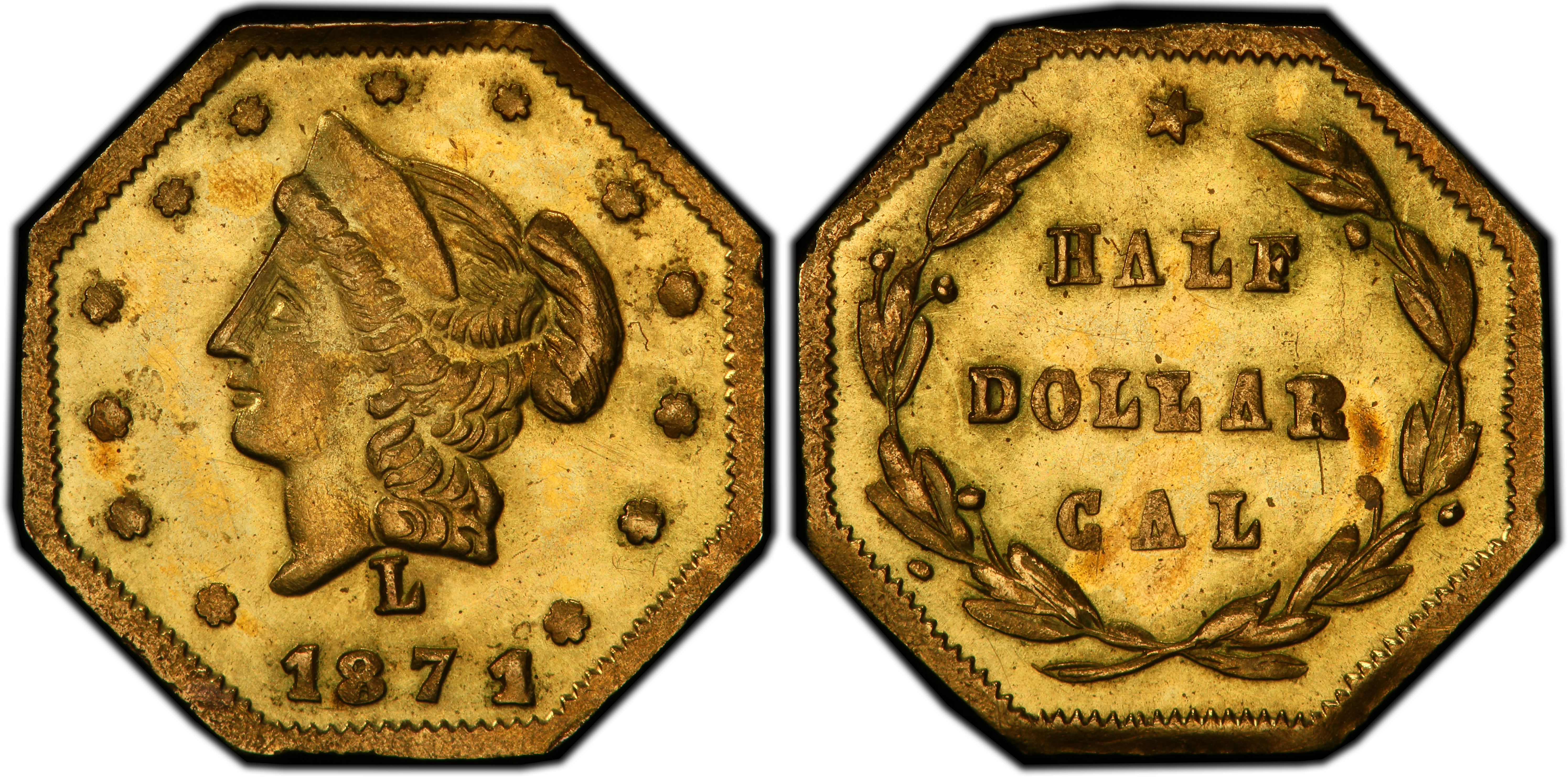 The 1871 G50C BG-927 is a product of the second period (1859-1882) of California Fractional Gold production, a fascinating and complex chapter in American numismatics. Following the initial Gold Rush boom, the acute shortage of small change that prompted the first wave of private gold coinage (Period One, 1852-1857) had largely been resolved by the output of the new San Francisco Mint. However, the allure of California gold and the romance of the '49ers had captured the nation's imagination. Enterprising jewelers, many of French origin in San Francisco, recognized a new market: not coins for circulation, but souvenirs and keepsakes for tourists and easterners fascinated by the West. These 'jeweler's issues,' as they are often called, were not intended to serve as a primary medium of exchange. They were typically underweight for their stated value and often made of lower-purity gold than their Period One predecessors. The production process remained rudimentary, often utilizing a sledgehammer to strike a top die, resulting in inconsistent strike quality. The Coinage Act of 1864 technically outlawed all private coinage, but enforcement was lax, and the popularity of these small gold tokens ensured their continued production into the early 1880s. The BG-927 variety, dated 1871, fits squarely into this era of peak souvenir production. Its existence speaks to a California that had matured from a raw frontier into a major economic and cultural center, one that was already mythologizing its own recent past. These tiny gold pieces were tangible links to the Gold Rush dream. It wasn't until a concerted crackdown by the U.S. Secret Service under Chief James J. Brooks in the early 1880s, citing concerns over potential fraud, that the production of these historic and popular items was finally halted.
