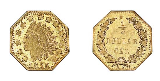 The 1875 BG-933 fifty-cent piece emerges from the second major phase of California Fractional Gold production, a period numismatists categorize as 'Period Two' (1859-1882). Unlike the initial 'Period One' issues (1852-1856), which were struck out of genuine commercial necessity to alleviate a crippling shortage of small change in the gold fields, these later pieces served a different purpose. By the 1870s, the San Francisco Mint was in full operation, supplying the region with ample federal coinage. The frantic, gold-dust-for-whiskey economy of the early Gold Rush had matured. The impetus for striking these tiny gold pieces had shifted from transactional need to nostalgic and commercial appeal. Enterprising jewelers, many of French origin located in San Francisco, recognized a burgeoning market for souvenirs and keepsakes. The romance of the Gold Rush was a powerful draw for tourists, visitors, and even locals who wanted a tangible piece of the era's allure. These 'jeweler's issues' were lighter and often of lower fineness than their Period One predecessors, containing significantly less gold than their face value implied, making them a form of token coinage. They were produced using the same rudimentary 'hammer method' as the earlier pieces, where dies were struck by hand with a sledgehammer, resulting in inconsistent strike quality. The Coinage Act of 1864 had made the private issuance of coinage illegal, but the law was not strictly enforced in the West until the early 1880s, allowing this cottage industry to flourish for nearly two more decades. The BG-933, with its popular Indian Head motif—a design choice echoing contemporary federal coinage but with a distinct private flair—represents the pinnacle of this souvenir trade. These pieces were never intended to be the lifeblood of commerce like their predecessors but were instead cherished mementos of California's golden age, a role that ironically ensured a higher survival rate in uncirculated condition than many of the earlier, more heavily used issues.