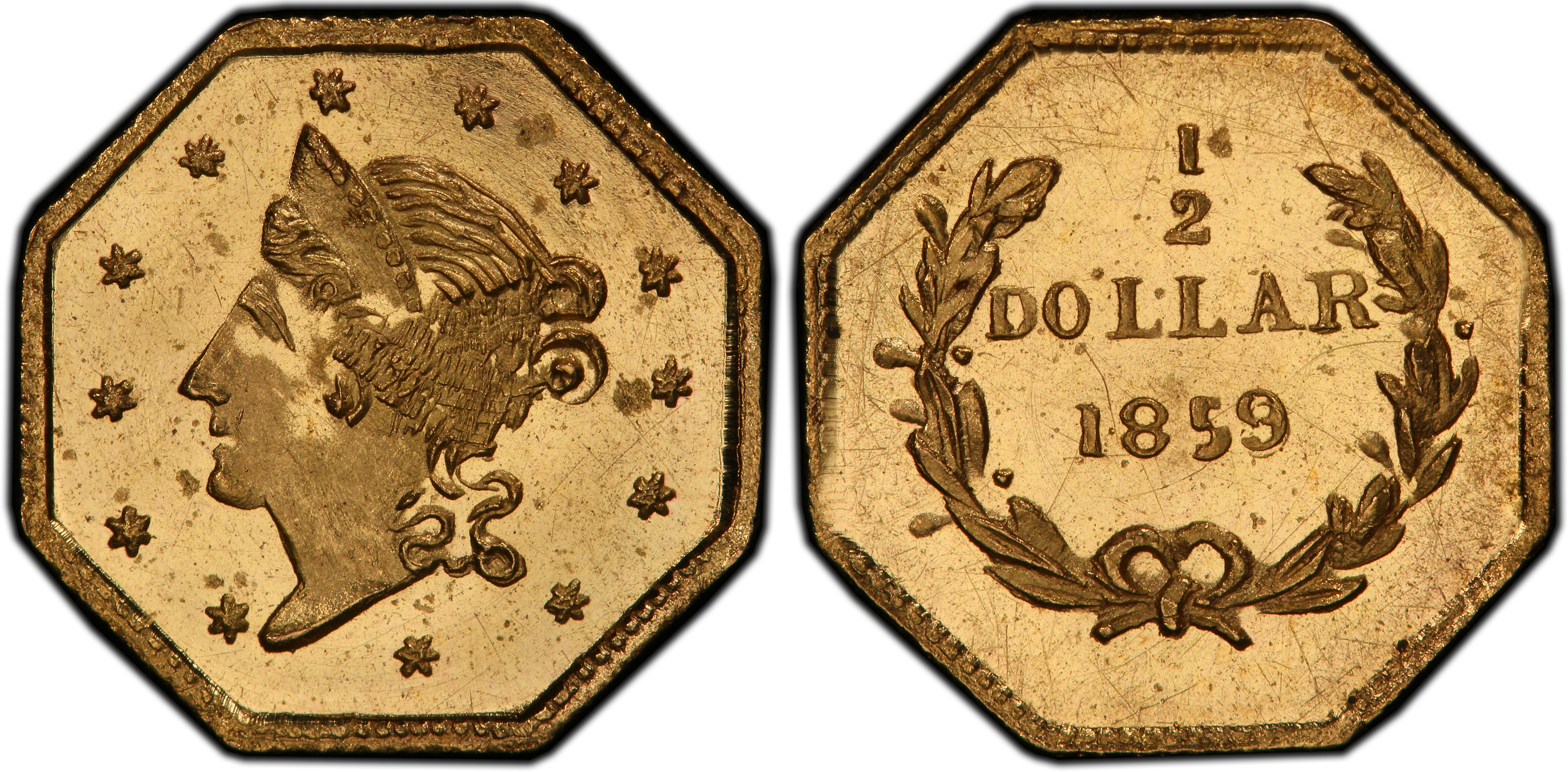 Reason For MintingTo alleviate a severe shortage of small-denomination coinage for everyday commercial transactions in post-Gold Rush California.