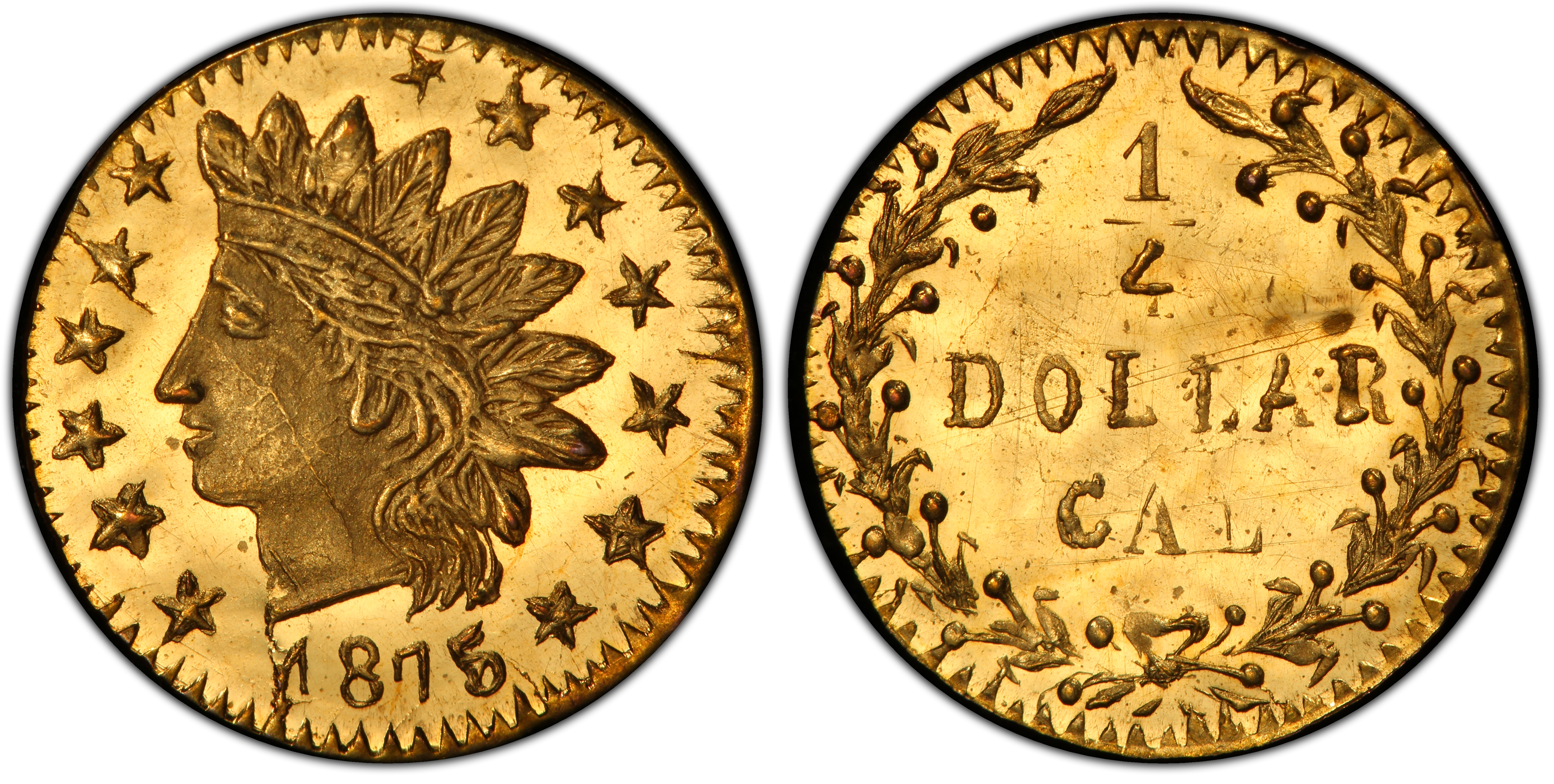 Historical SignificanceRepresents the evolution of California Fractional Gold from a necessary medium of exchange in the 1850s to a commercial souvenir industry by the 1870s. It showcases the persistence of private minting in a legal gray area and reflects the enduring national fascination with the California Gold Rush long after the initial frenzy had passed. The BG-878, as a 'common' variety, illustrates the scale of this souvenir trade.