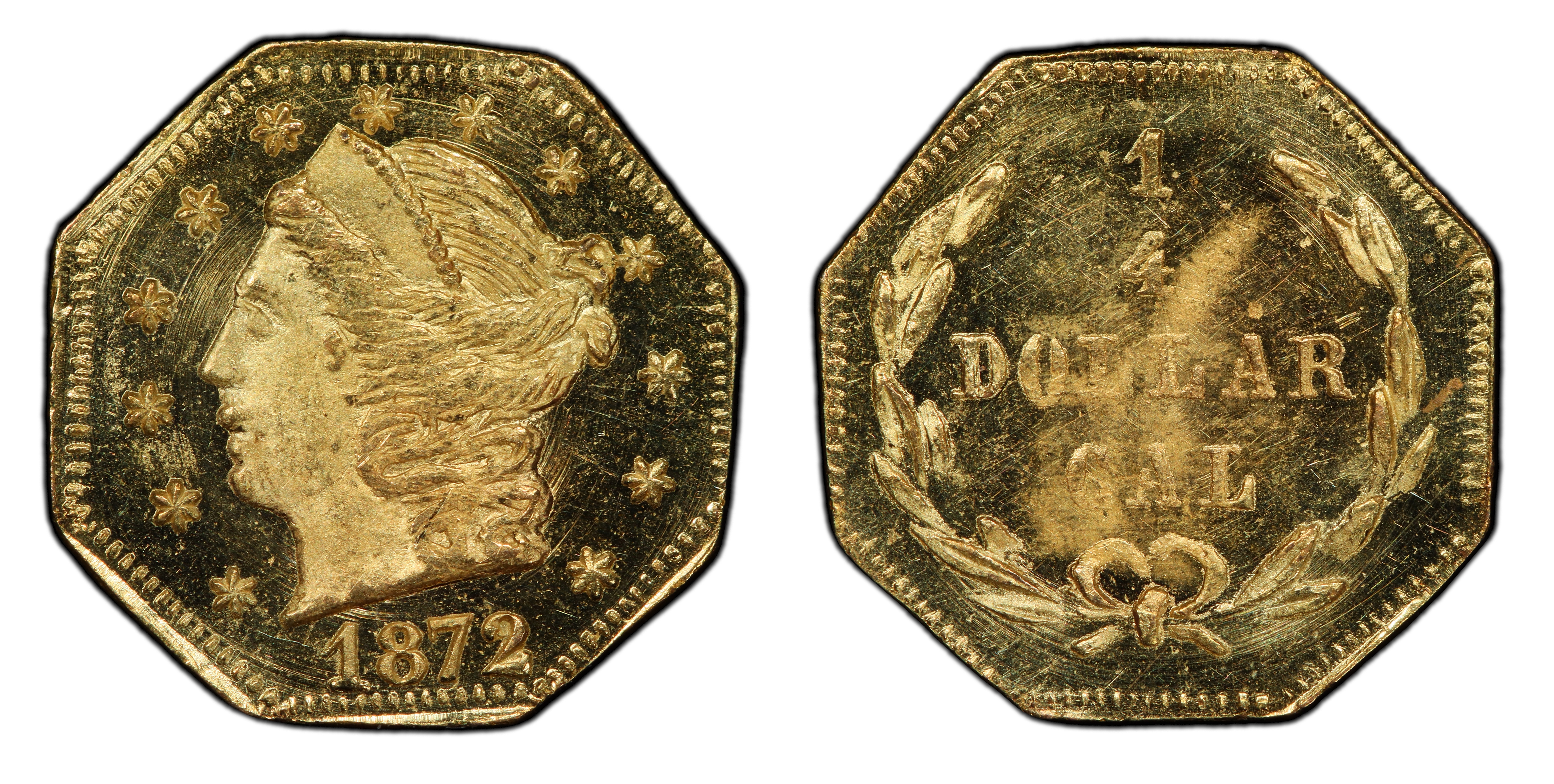 The 1872 25-cent BG-725 is a quintessential example of a 'Period Two' California Fractional Gold piece. By the early 1870s, the acute shortage of small change that had plagued California during the Gold Rush had largely been resolved by the output of the United States Mint in San Francisco. The impetus for producing these minuscule gold coins had shifted entirely from commerce to novelty. The completion of the transcontinental railroad in 1869 had opened California to a new wave of tourists and settlers who were captivated by the romanticism of the Gold Rush. Enterprising jewelers in San Francisco, many of whom were French immigrants with fine engraving skills, recognized a burgeoning market for affordable and easily transportable souvenirs. These small, denominated gold pieces served as perfect mementos. Unlike the earlier 'Period One' issues (1852-1857), which were intended to and did circulate, these later pieces were merchandise. They were often intentionally struck with underweight planchets, their intrinsic value being secondary to their perceived connection to California's golden identity. The year 1872 was a dynamic time in San Francisco; the city was booming, rebuilding with grander architecture after earlier fires, and establishing itself as the financial and cultural hub of the West. Tourists and businessmen alike sought keepsakes of their visit, and these 'Cal Gold' fractionals fit the need perfectly. The production of these pieces existed in a legal gray area. The Private Coinage Act of 1864 had made such private issues illegal, but the law was not aggressively enforced against these small souvenir pieces until a Secret Service crackdown in the mid-1870s, which ultimately ended their production by 1882. The BG-725, with its often proof-like, reflective surfaces, was clearly designed for eye appeal rather than durability in circulation, a testament to its role as a cherished keepsake of a bygone, yet still celebrated, era.