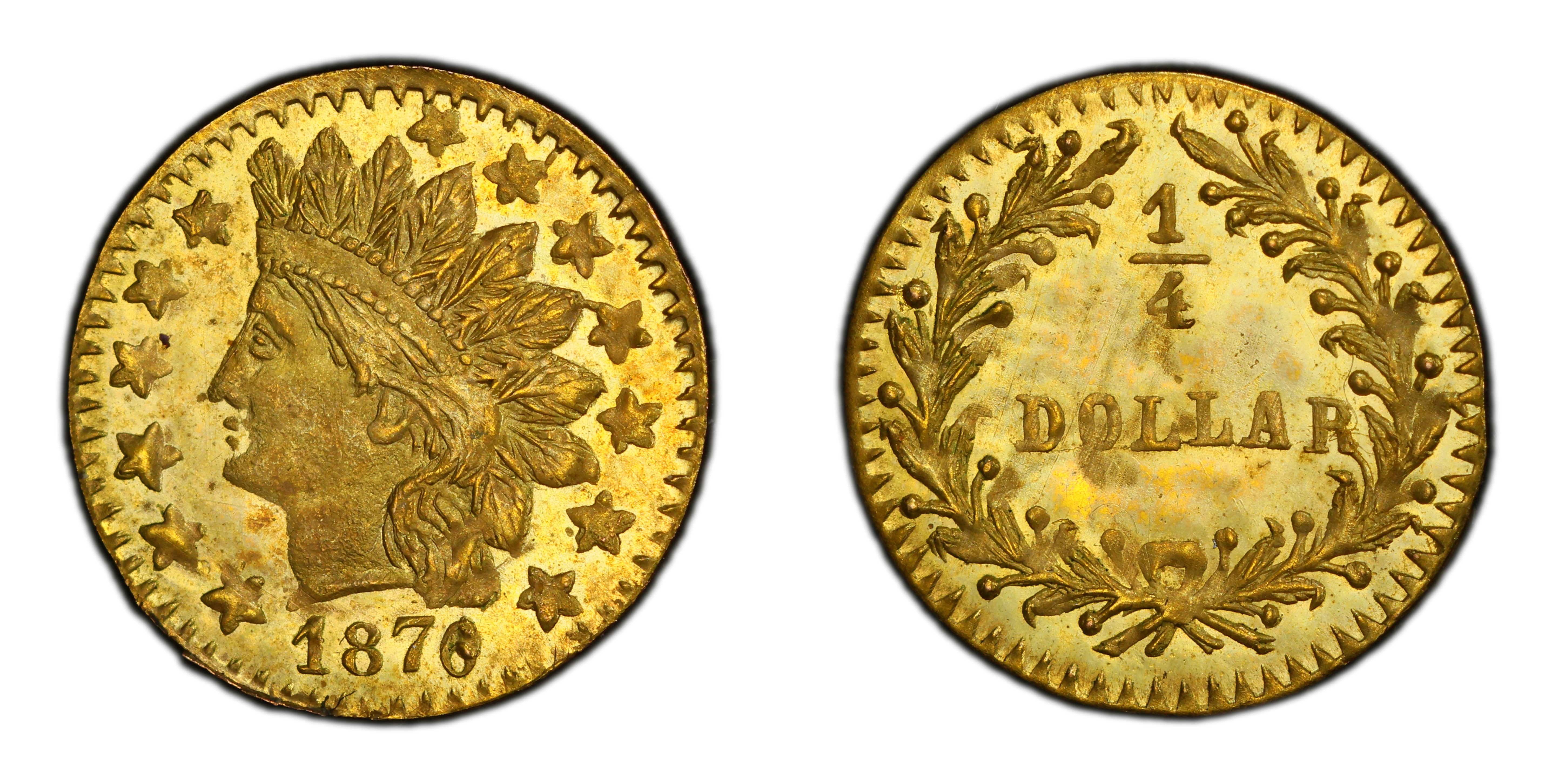 The 1878/6 BG-884 25 Cents represents a fascinating chapter in the story of California's privately issued gold coinage, belonging to what numismatists classify as 'Period Two' (1858-1882). By the late 1870s, the initial, desperate need for small denomination coinage that characterized the Gold Rush had long since vanished. The San Francisco Mint, operating since 1854, produced ample federal silver and minor coinage to facilitate daily commerce. The raison d'ĂȘtre for these minuscule gold pieces had thus shifted dramatically from utility to novelty. San Francisco had blossomed into a major metropolis and a tourist destination. Visitors from the East Coast and abroad were captivated by the romantic legacy of the '49ers and the mystique of gold. Local jewelers and private minters astutely capitalized on this sentiment, producing these small gold tokens as keepsakes and souvenirs. The BG-884 is a quintessential example of this 'jeweler's issue.' It was never intended to circulate as money in the traditional sense. The Coinage Act of April 22, 1864, had technically made all private coinage illegal. However, enforcement by the U.S. Secret Service was inconsistent and primarily focused on larger-denomination pieces that could more easily defraud the public. For nearly two decades, the production of these tiny tokens, which contained a value in gold far below their stated denomination, was largely ignored. This legal gray area allowed for a prolific and diverse series of souvenir coins to be struck. The 1878/6 overdate itself is telling; an obverse die from 1876 was crudely re-engraved to create a new 'variety' for collectors and tourists, a purely commercial motivation. These pieces were often struck using the hammer method, resulting in variability in strike quality and planchet preparation, a characteristic evident in the striated surfaces commonly seen on the BG-884. This era of souvenir gold came to a close in the early 1880s when James J. Brooks, the zealous Chief of the Secret Service, finally cracked down on their manufacture, bringing an end to the nearly 30-year tradition of private gold coin production in California.