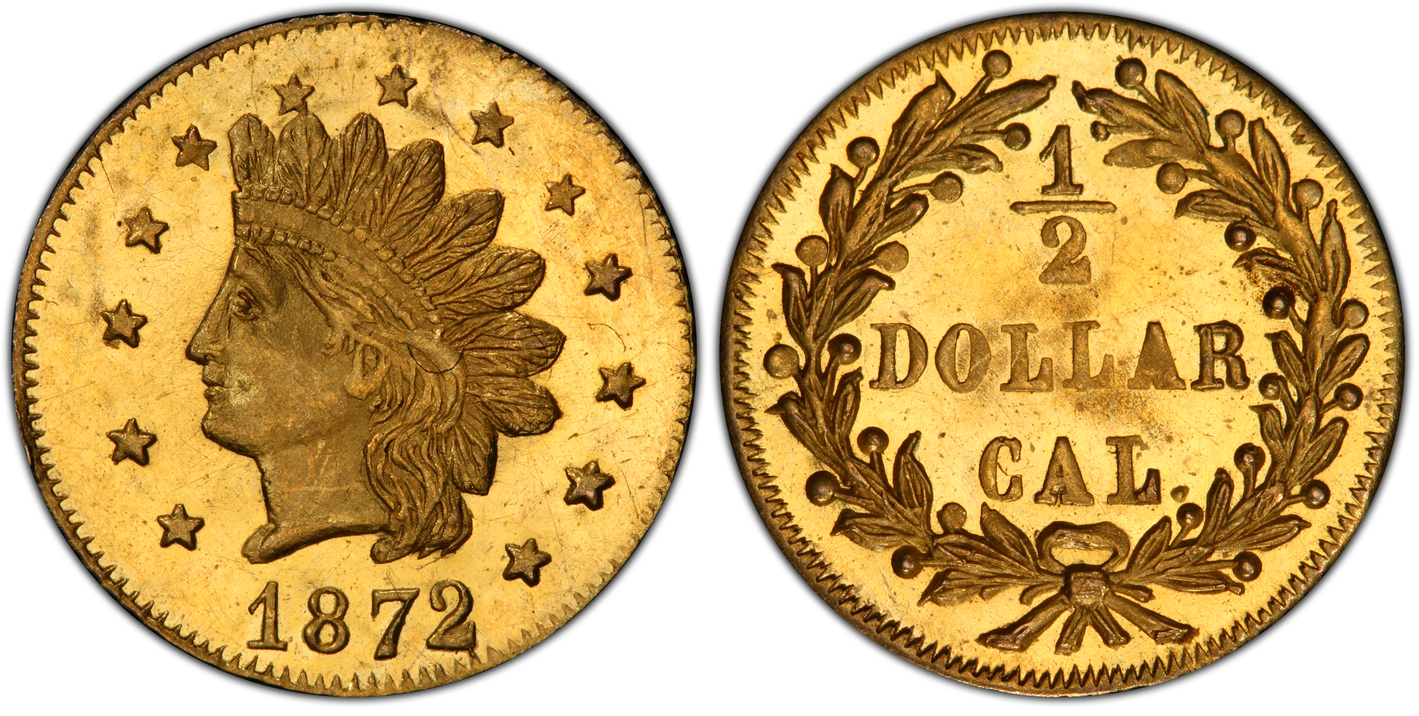 The 1872 BG-1048 fifty-cent piece is a quintessential example of a 'Period Two' California Fractional Gold coin, a series born from the acute shortage of small denomination currency that plagued California following the 1849 Gold Rush. In the initial boom years, commerce was crippled by a lack of circulating coinage, forcing transactions to be conducted with cumbersome gold dust, foreign coins of uncertain value, or large private gold ingots and coins ($5 and up). To fill this void, private jewelers and metallurgists in San Francisco began striking their own quarter, half, and one-dollar gold pieces starting in 1852. These initial 'Period One' (1852-1857) issues were generally of good weight and intended to circulate. However, by the time the BG-1048 was struck in 1872, the landscape had changed. The establishment and full-scale production of the U.S. Branch Mint in San Francisco in the mid-1850s had alleviated the coin shortage. The continued production of fractional gold pieces transitioned into a new phase. These 'Period Two' or 'Jeweler's Issues' (1859-1882) were typically underweight for their face value and served a dual purpose. While they may have seen limited use in small transactions, their primary market was as souvenirs, keepsakes, and jewelry items for tourists and locals alike, romanticizing the Gold Rush experience. The year 1872 was a period of significant production for these souvenir pieces. The minters, often skilled German or French jewelers like Christopher Mohrig, operated in a legal gray area. The Private Coinage Act of 1864 had made such issues illegal, but federal enforcement in California was lax until the Secret Service finally cracked down in the late 1870s and early 1880s, effectively ending the era. The BG-1048, with its popular Indian Head motif, represents this fascinating intersection of lingering monetary need and burgeoning commercial nostalgia.