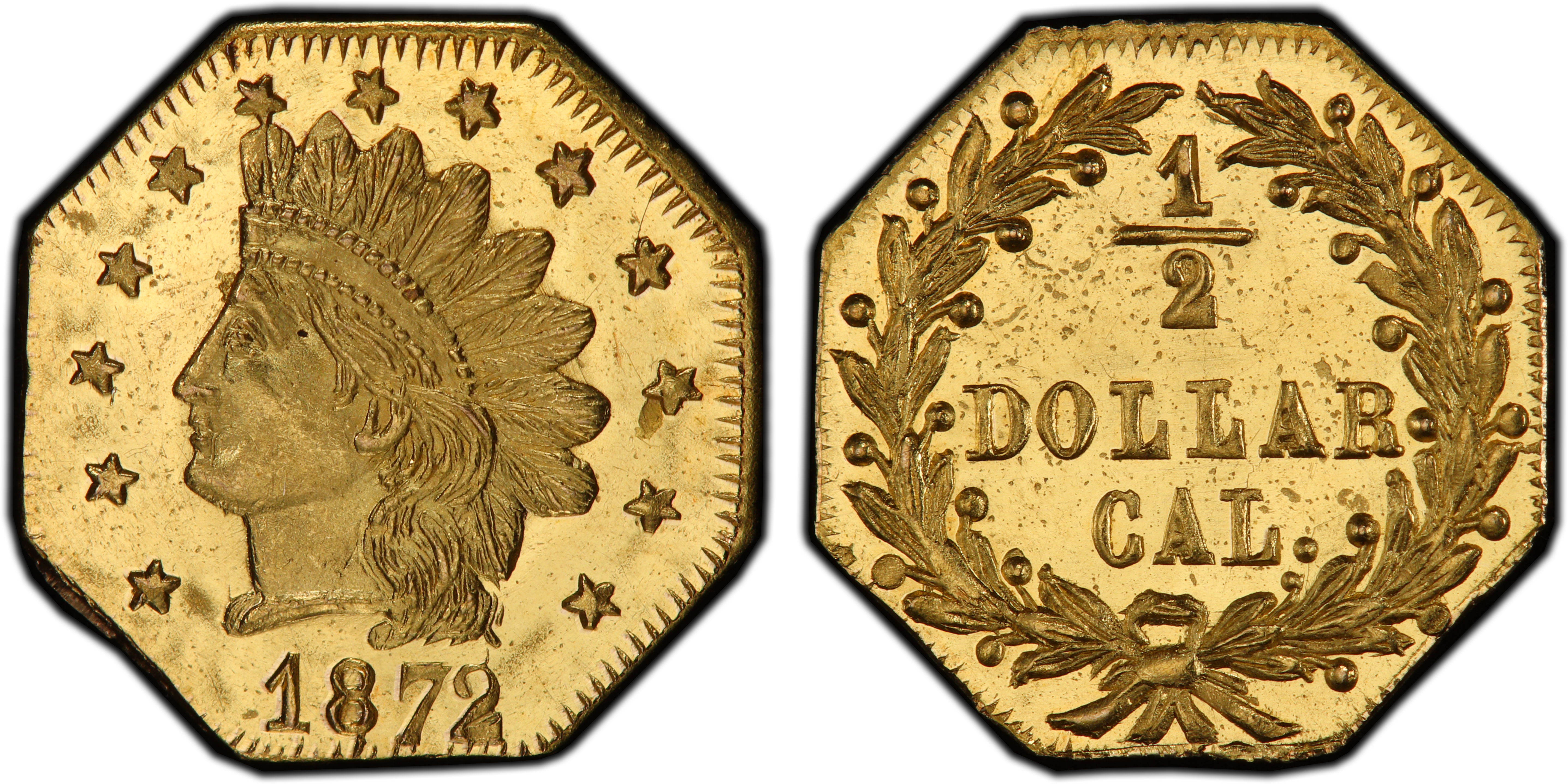 The 1872/1 BG-937 50 Cent piece emerges from the second great era of California Fractional Gold production, often termed 'Period Two' (1859-1882). Unlike their 'Period One' predecessors which were struck to alleviate a genuine shortage of small change during the initial Gold Rush frenzy, these later issues served a different purpose. By the 1870s, the San Francisco Mint was in full operation, supplying the region with ample federal coinage and rendering private issues for circulation obsolete. The impetus for pieces like the BG-937 had shifted from commerce to souvenir and novelty. San Francisco jewelers, such as Robert B. Gray & Co. and their contemporaries, recognized a burgeoning market among tourists, settlers, and those back East who were captivated by the romance of the Gold Rush. These tiny gold coins were tangible, affordable mementos of the Golden State. The BG-937 is a quintessential 'jeweler's issue.' These were not clandestine counterfeits but openly sold novelties, yet their existence occupied a legal gray area. The Coinage Act of 1864 had prohibited private coinage, but enforcement by the Secret Service was inconsistent and not fully applied until 1883. This allowed for nearly two more decades of production. A key characteristic of Period Two issues is that they were intentionally struck underweight, with their intrinsic gold value being significantly less than their face value. The gold fineness was also inconsistent, ranging anywhere from 14 to 22 karats, as minters used whatever alloyed gold was on hand. The manufacturing process often involved hand-operated screw presses, leading to variability in strike quality. The '1872/1' designation signifies an overdate, where a die from 1871 was re-engraved for use in 1872, a common cost-saving measure for these private ventures. The existence of Deep Mirror Proof-Like (DMPL) specimens indicates that some were struck using freshly polished dies to create a flashy, eye-catching product for the souvenir trade, mimicking the appearance of official U.S. Mint special strikings. Today, the BG-937 is a prized collectible, valued not for its bullion but for its rarity, historical connection to a transformative period in American history, and as a representative of the fascinating numismatic niche of jeweler's issues.