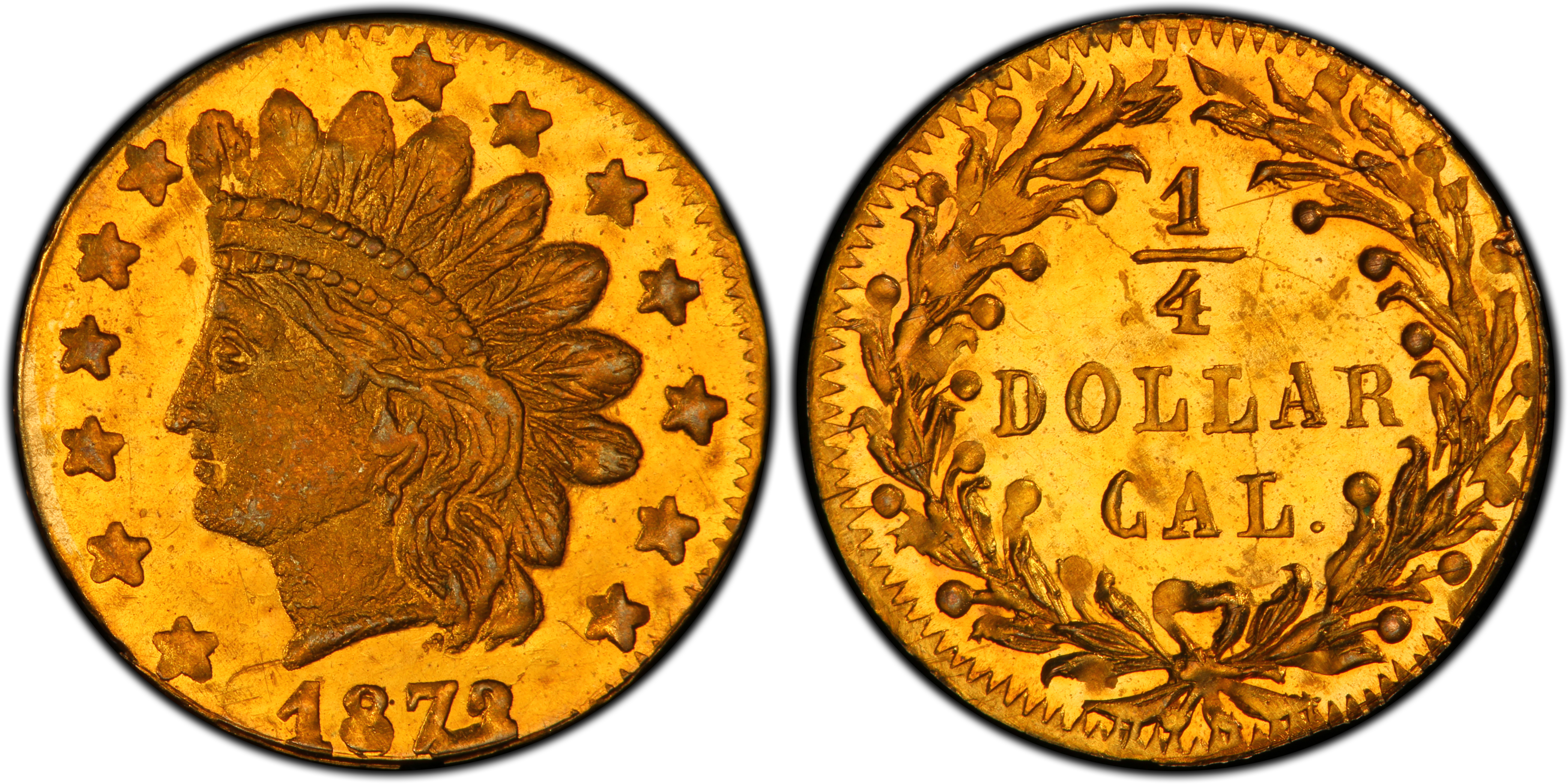 The 1872/1 BG-870 25-cent piece is a quintessential example of a 'Period Two' California Fractional Gold coin. By the 1870s, the initial, urgent need for small-denomination circulating currency that characterized the Gold Rush (1852-1858) had long subsided. The establishment and robust output of the U.S. Branch Mint in San Francisco had supplied the region with ample federal coinage. Consequently, the private production of fractional gold shifted from a utilitarian necessity to a commercial enterprise catering to tourists, collectors, and the jewelry trade. These small, intricate gold pieces became popular souvenirs of a romanticized Gold Rush past. The minter of this variety, Christopher Ferdinand Mohrig, was a San Francisco jeweler who was one of the more prolific producers of these souvenir coins during this era. The clear 1872/1 overdate is a result of the re-punching of a die from the previous year, a common cost-saving measure among private minters. This period was legally precarious for private mints. The Private Coinage Act of 1864 had made such issues illegal, but enforcement was lax for over a decade. The federal government's attention was focused elsewhere during the Civil War and Reconstruction. This allowed jewelers like Mohrig to operate openly, producing denominated gold pieces that mimicked official coinage in design, if not in intrinsic value. However, the tide turned in the mid-1870s. The Secret Service, under Chief James J. Brooks, began to view these private issues as a potential source of fraud and a violation of federal law. On August 10, 1876, Mohrig's establishment was raided, and he was arrested. His dies and existing coin stock were confiscated and later destroyed, an event that instantly turned his entire output into a collectible with a dramatic backstory and a finite supply. The BG-870, therefore, is not just a coin, but a relic from the final, defiant years of private minting in California, a tangible link to a San Francisco jeweler whose enterprise was ultimately shut down by federal agents.