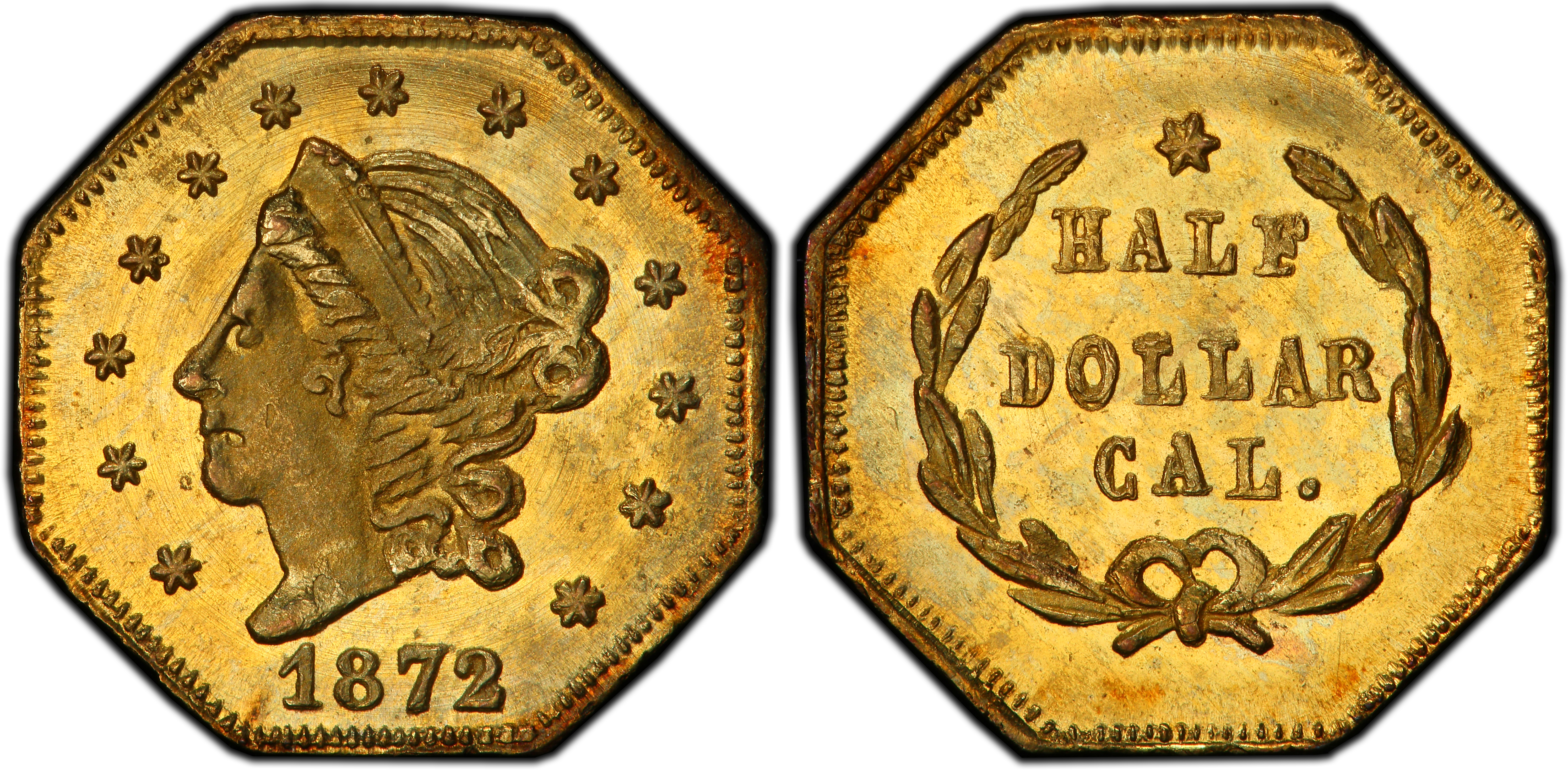 The 1872 BG-913 50 Cent piece is a quintessential example of a 'Period Two' California Fractional Gold coin. The history of these fascinating miniatures begins with the California Gold Rush. The initial influx of over 300,000 people created a vibrant, cash-intensive economy that was severely hampered by a chronic shortage of small-denomination coinage. In the early 1850s, 'Period One' fractional gold pieces were struck by private jewelers to genuinely fill this commercial void, representing a tangible solution to the problem of making change when a pinch of gold dust was the smallest unit of commerce. However, by the 1860s and 1870s, the economic landscape had changed. The San Francisco Mint, opened in 1854, was in full production, and federal coinage had become more plentiful. The need that birthed the first fractional gold had largely evaporated. The pieces struck from 1859-1882, classified as 'Period Two' issues, were created for a different reason: nostalgia and tourism. San Francisco had transformed from a chaotic boomtown into a major American city and a tourist destination. These later fractional gold pieces were manufactured primarily as souvenirs and keepsakes, mementos of the romanticized Gold Rush era. They were often underweight and of lower fineness compared to their Period One predecessors, not truly intended to pass as currency at face value. The Coinage Act of 1864 had made private coinage illegal, but lax enforcement allowed jewelers to continue production until a Secret Service crackdown in the early 1880s. The BG-913 was born in this souvenir era and is numismatically attributed to the California Jewelry Company, a firm run by the Levison Brothers, who had acquired the fractional gold interests of Robert B. Gray & Co. in 1871. These pieces represent a fascinating economic and cultural transition, from utilitarian necessity to commercialized nostalgia, capturing the enduring mythology of the California Gold Rush.