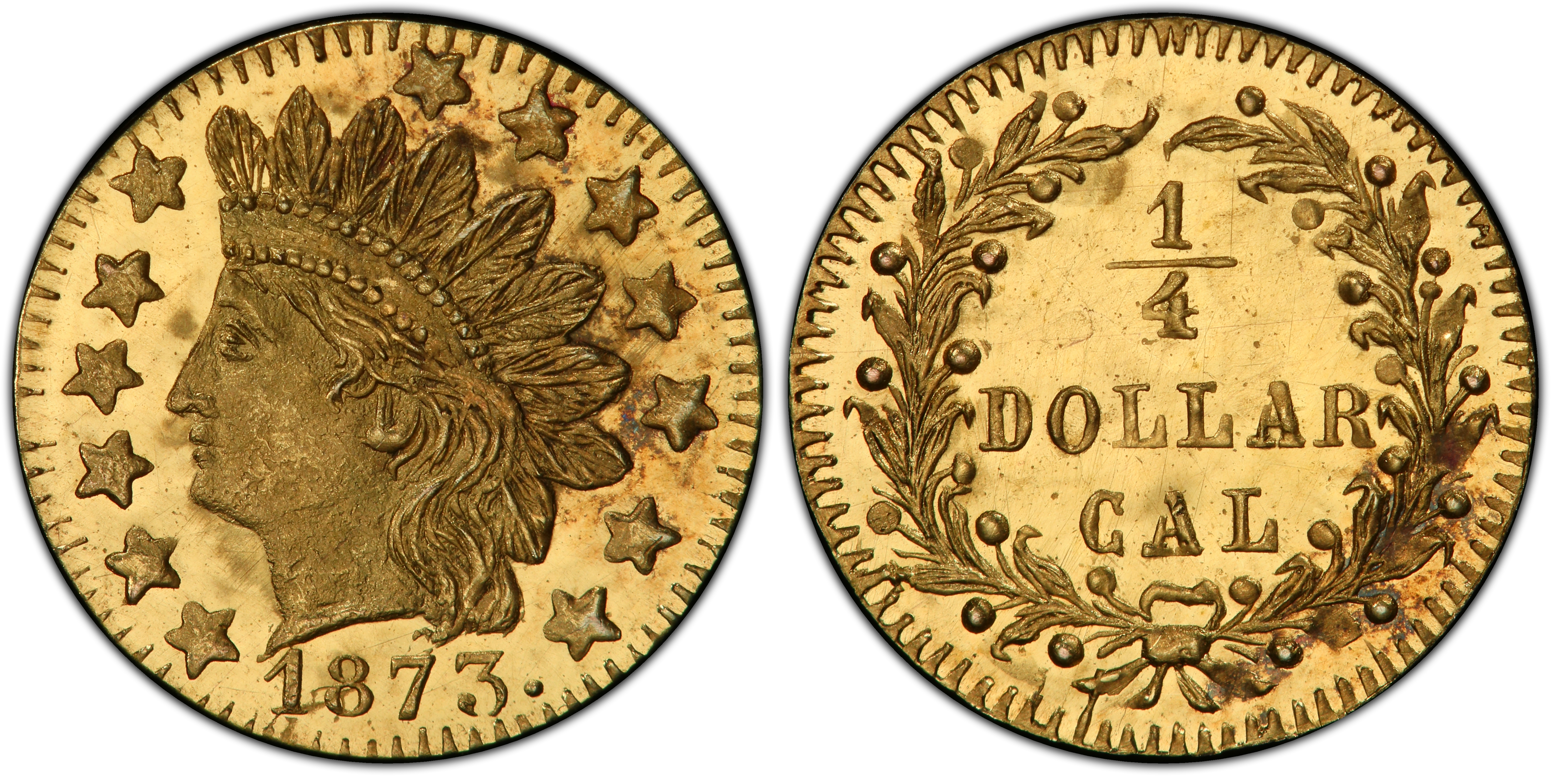 The 1873 G25C BG-872 is a product of a fascinating and lengthy period in California's numismatic history, long after the initial Gold Rush fervor had subsided. By the 1870s, the economic landscape of the West Coast had matured. The large-denomination private gold coins of the '49ers were a distant memory, but a localized need for small change persisted, particularly in areas still reliant on gold dust for transactions. While the U.S. Mint in San Francisco produced standard federal coinage, the smallest gold coin was the dollar, which was a significant sum for minor daily purchases. Silver coins were often scarce or hoarded. This created a commercial niche for privately manufactured, small-denomination gold tokens, colloquially known as California Fractional Gold. These pieces, in quarter dollar, half dollar, and dollar sizes, were not legal tender but were widely accepted as a convenient medium of exchange. They were lightweight, often containing gold value significantly less than their face value, and served as souvenirs or 'keepsakes' as much as they did circulating currency. The manufacturer of the BG-872 variety is attributed to the California Jewelry Company of San Francisco, a firm known for producing a variety of such pieces during this era. These tokens were struck with designs that mimicked federal coinage, such as the Indian Head motif, to inspire public confidence. Their production was a purely commercial enterprise, meeting a practical need while also profiting from the public's continued fascination with gold. The era of fractional gold came to a close with the passage of the Act of 1883, which explicitly forbade the private minting of coins, rendering these charming and historically significant pieces obsolete.