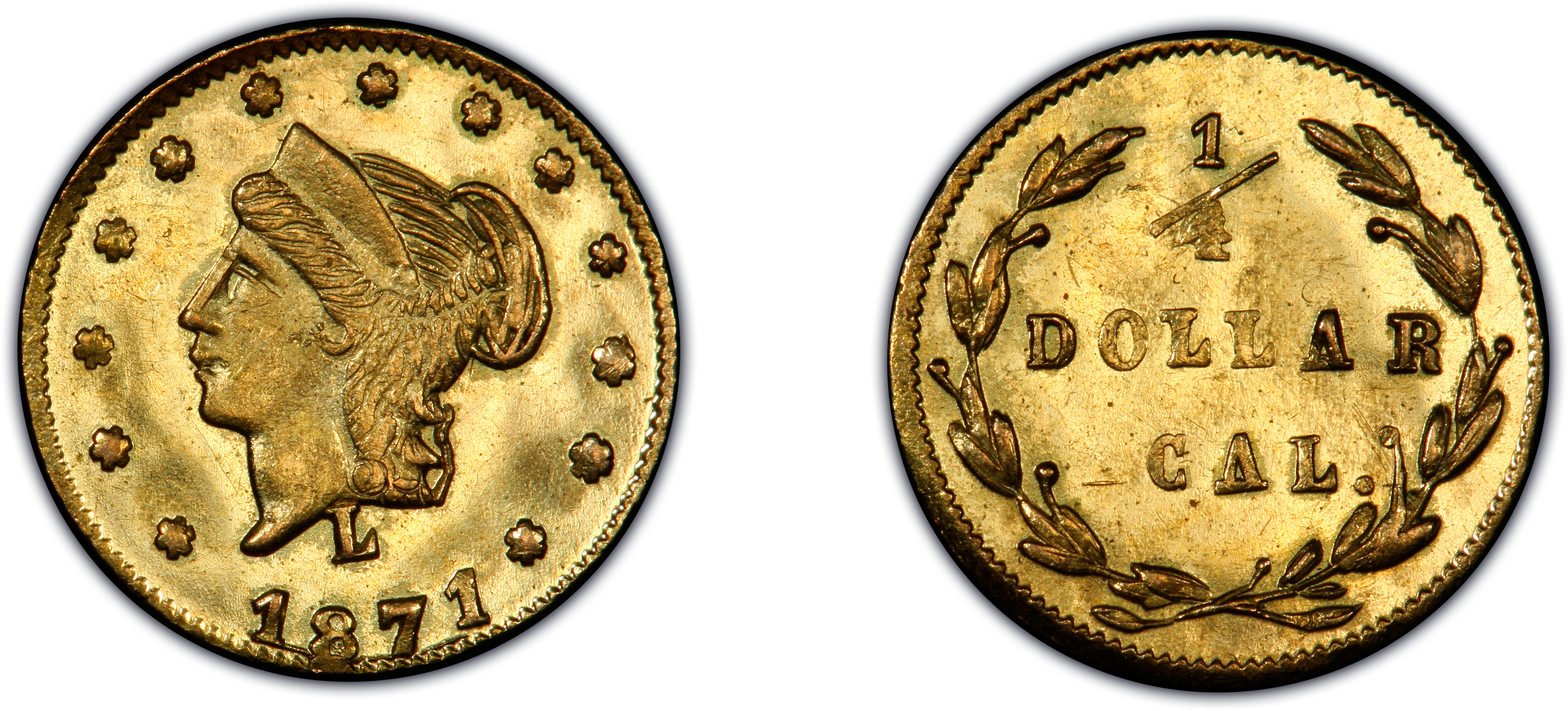 The 1871 BG-841 25 Cents is a quintessential example of a 'Period Two' California Fractional Gold piece, a numismatic category defined by Walter Breen and Ronald J. Gillio as 'Suppressed Jewelers' Issues.' Unlike their 'Period One' predecessors (1852-1857), which were struck with at least a pretense of alleviating the chronic shortage of small change in Gold Rush California, the Period Two issues were created in a vastly different economic and legal landscape. By 1871, the San Francisco Mint was producing ample federal silver coinage, obviating any real need for private fractional gold. Furthermore, the Private Coinage Act of June 8, 1864, had explicitly outlawed the striking of private coins. This legislation, however, was not rigorously enforced in California for many years, allowing a cottage industry of jewelers to continue producing these miniature gold pieces. Their primary purpose had shifted from commerce to curiosity. They were sold as souvenirs, keepsakes of the 'Golden State,' and affordable charms for watch chains and jewelry. These pieces were often underweight and of varying fineness, as their value was derived from their novelty rather than their intrinsic metal content. Struck by the crude 'hammer method'—a top die struck with a sledgehammer onto a planchet resting on a bottom die—their quality varied immensely. The year 1871 was a pivotal one for this trade. In San Francisco, jeweler Robert B. Gray sold his interests to the California Jewelry Co., which was associated with the prominent Levison Brothers. While many 1871-dated pieces bear a maker's mark (such as 'G' for Gray or 'L' for Levison), the dies used for BG-841 are anonymous. This anonymity may have been a deliberate attempt to avoid scrutiny from the U.S. Secret Service, which was beginning to crack down on private minters, culminating in the seizure of the Hershfield & Mitchell operation in Kansas that same year. The existence of BG-841 speaks to a persistent, if clandestine, market for these gold tokens, which captured the allure of the Gold Rush for tourists and locals alike long after its fever had passed.