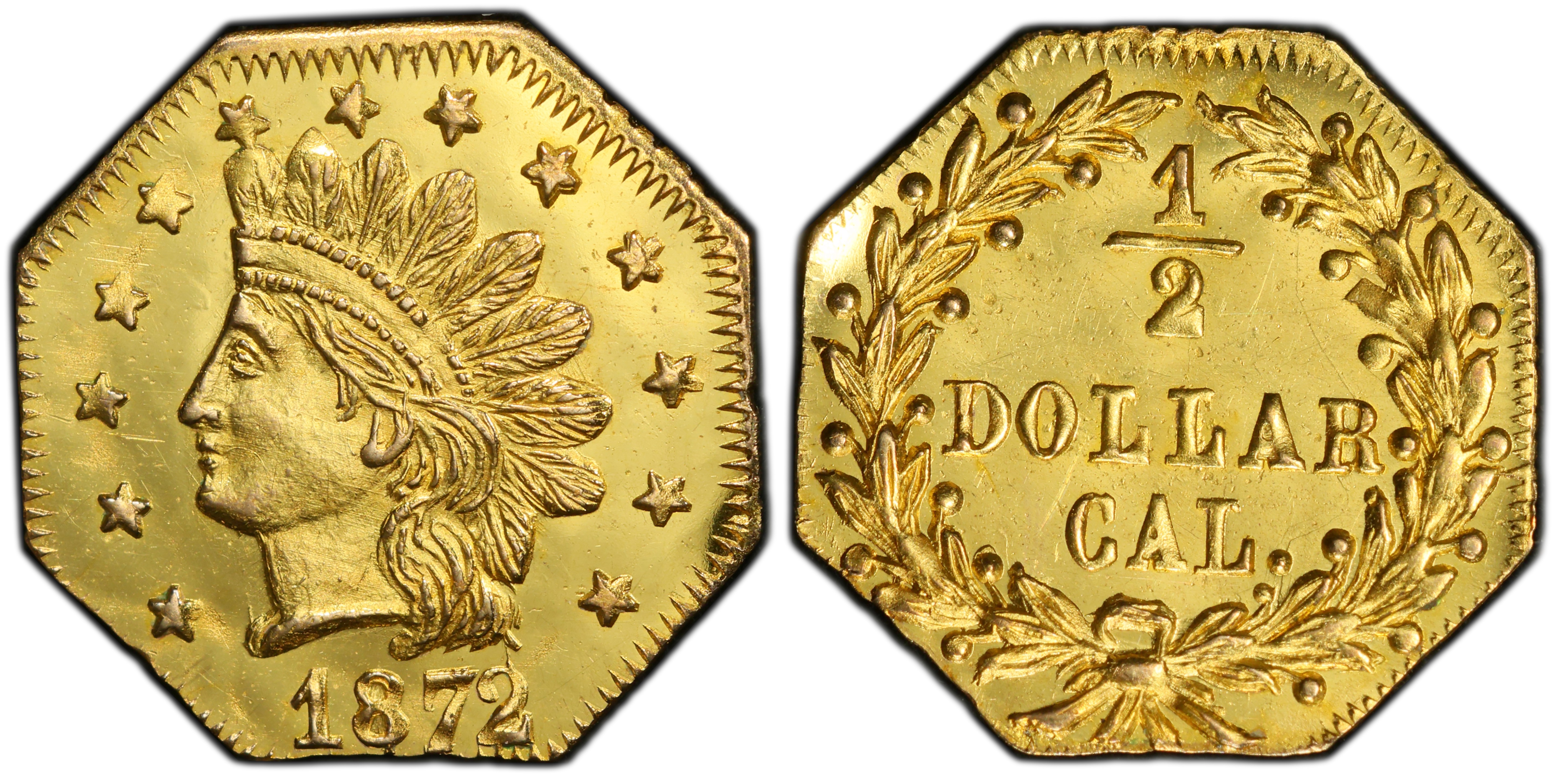Historical SignificanceThis coin is significant as it exemplifies the 'Period Two' souvenir phase of California Fractional Gold production. It demonstrates the continued romantic appeal of the Gold Rush long after the initial fever had subsided and federal coinage became plentiful. The 1872/1 overdate provides a direct link to the annual production practices of these private minters and serves as a key diagnostic for numismatists.