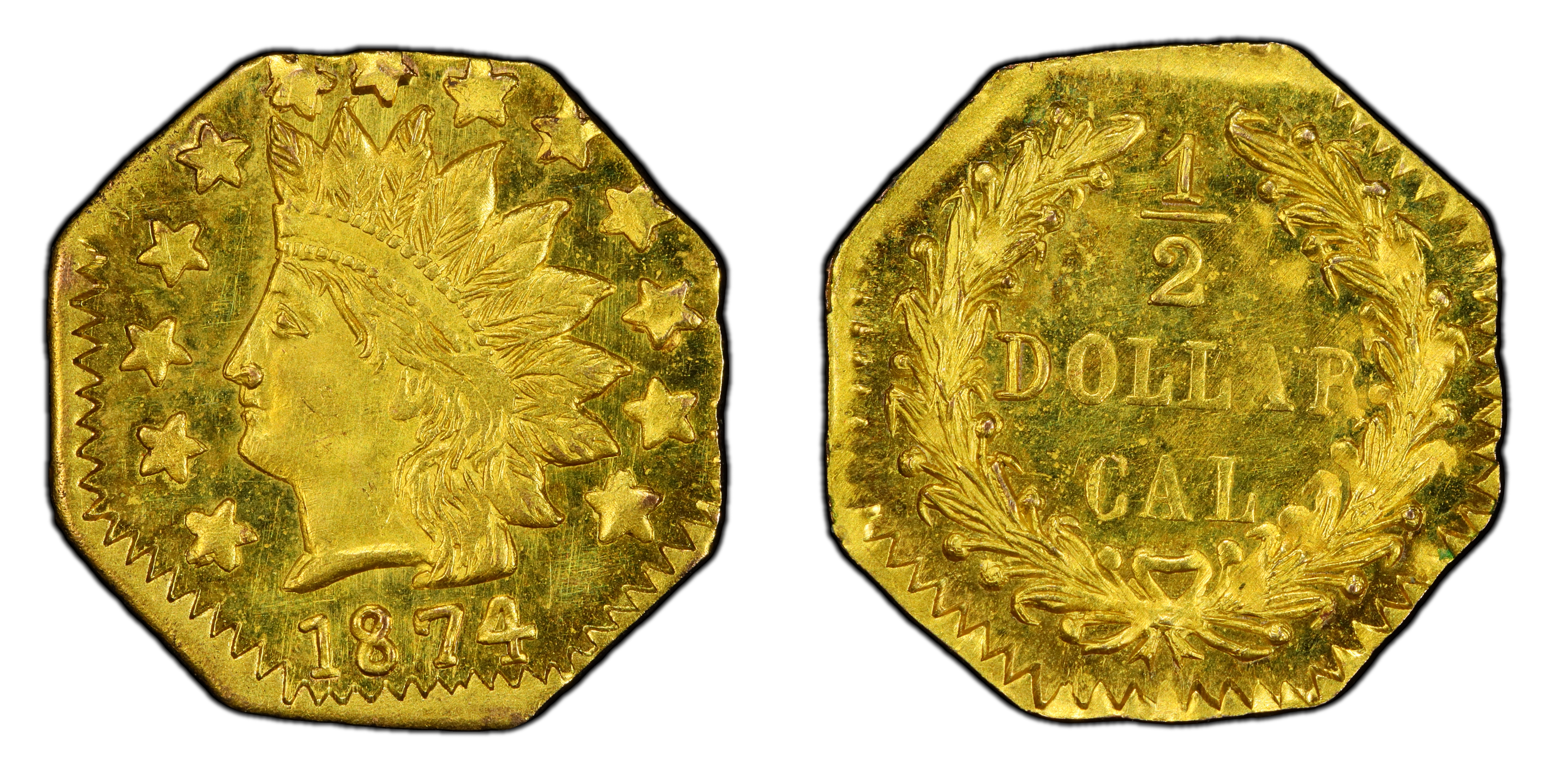 The 1874 BG-958 50 Cents represents a fascinating chapter in the long and complex story of California Fractional Gold. By 1874, the initial frenzy of the Gold Rush was a quarter-century in the past, but its economic consequences lingered. California, now a mature state, still operated in a commercial environment where small change was chronically scarce. Federal coinage, particularly in silver denominations, was often shipped east to settle accounts, leaving a vacuum for daily transactions. This void, which had existed since the late 1840s, was filled by a succession of private minters who produced diminutive gold coins in 25 cent, 50 cent, and dollar denominations. These pieces, while technically not legal tender, were indispensable for commerce, allowing citizens to buy a drink, a loaf of bread, or a newspaper without resorting to clumsy pinches of gold dust. The period in which the BG-958 was struck is often referred to by numismatists as 'Period Three' (1872-1882) of California Fractional Gold production. This era was characterized by more standardized manufacturing techniques and designs, often produced by jewelers and metallurgists like Robert B. Gray & Co. in San Francisco. Unlike the crude, necessity-driven issues of the early 1850s, these later pieces were well-made and intended to circulate widely, becoming an accepted part of the regional economy. However, their existence was a persistent annoyance to the U.S. government, which viewed private coinage as an infringement on its federal authority. The Coinage Act of 1864 had explicitly outlawed the private minting of coins, yet the practice continued in California due to lax enforcement and genuine local need. These 'tokens' or 'charms,' as they were sometimes defensively called by their makers, continued to be struck until Secret Service crackdowns in the early 1880s finally brought the era to a close. The BG-958, with its Indian Head motif—a popular design choice of the time, echoing federal coinage—is a tangible artifact of this lingering economic independence and the final chapter of a uniquely Western solution to a national currency shortage.