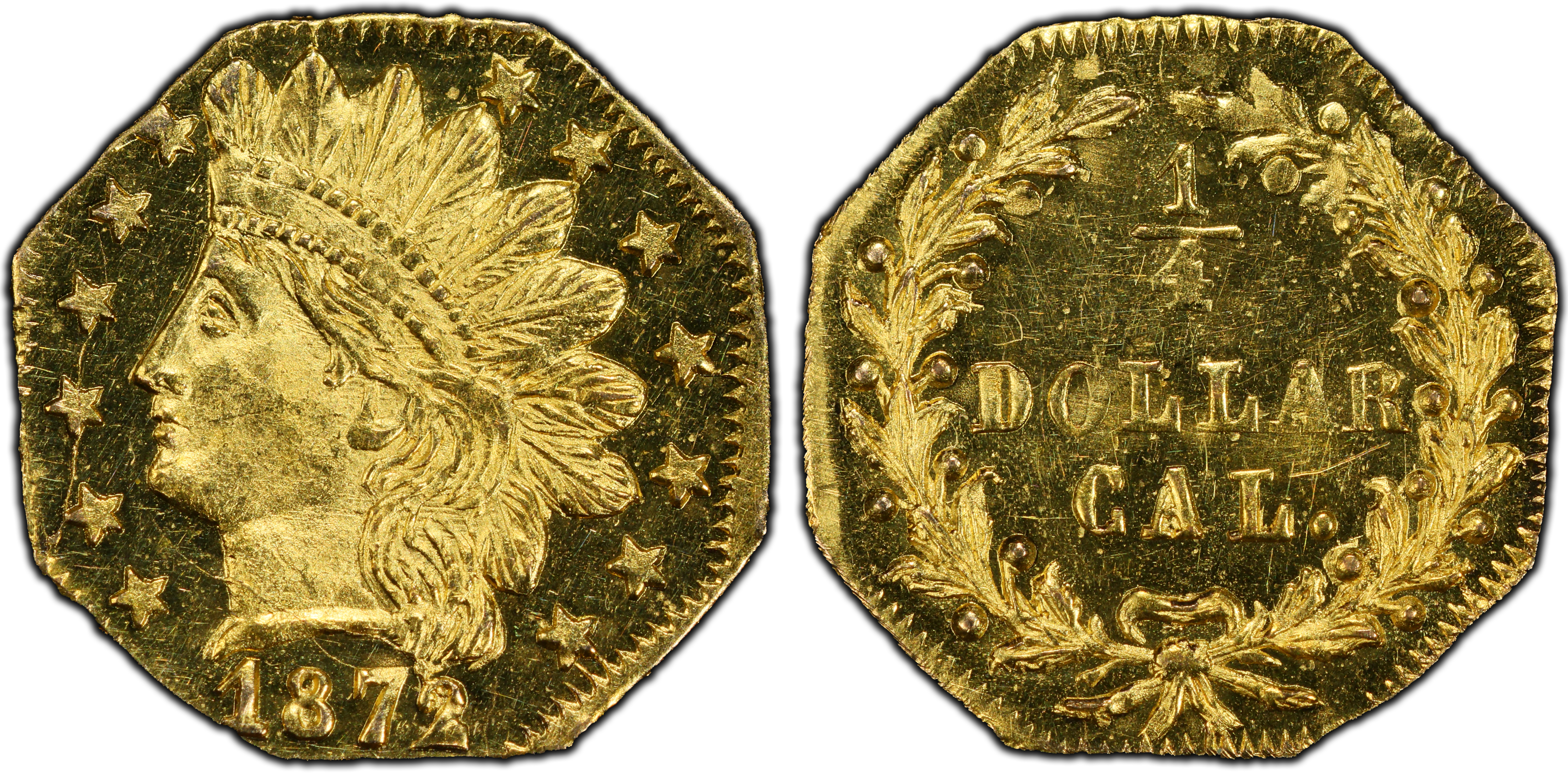 The 1872/1 G25C BG-790 is a quintessential example of a 'Period Two' California Fractional Gold piece. This era, spanning from 1859 to 1882, represents a significant shift from the initial, necessity-driven 'Period One' issues. By the 1870s, the acute shortage of small change that plagued California during the Gold Rush had largely been resolved by the output of the official San Francisco Mint. Consequently, the private production of fractional gold transitioned from a functional monetary necessity to a commercial enterprise catering to tourists, jewelry makers, and collectors. These later pieces, often termed 'jeweler's issues,' were struck by various manufacturers, with Christopher Ferdinand Mohrig being the prolific producer of the BG-790 and related varieties. Mohrig, a San Francisco jeweler, operated during a legally ambiguous period. The Private Coinage Act of 1864 had prohibited the issuance of private money, but federal enforcement was inconsistent and often lax, particularly on the distant West Coast. This allowed jewelers like Mohrig to continue production, often backdating coins to pre-1864 years to feign legality. The 1872/1 overdate is a fascinating byproduct of this practice, where an 1871 die was re-punched for use in 1872, a common cost-saving measure for these private ventures. These small, octagonal pieces were not intended to meet their stated face value in gold content and were known to be significantly underweight, a fact that precluded their widespread use in commerce but made them affordable and popular as souvenirs of the romanticized Gold Rush. Mohrig's enterprise came to an abrupt end on August 10, 1876, when he was arrested by the U.S. Secret Service for illegal coining. His dies and stock of coins were confiscated and destroyed, an event that ironically contributes to the rarity and numismatic appeal of his surviving issues today.