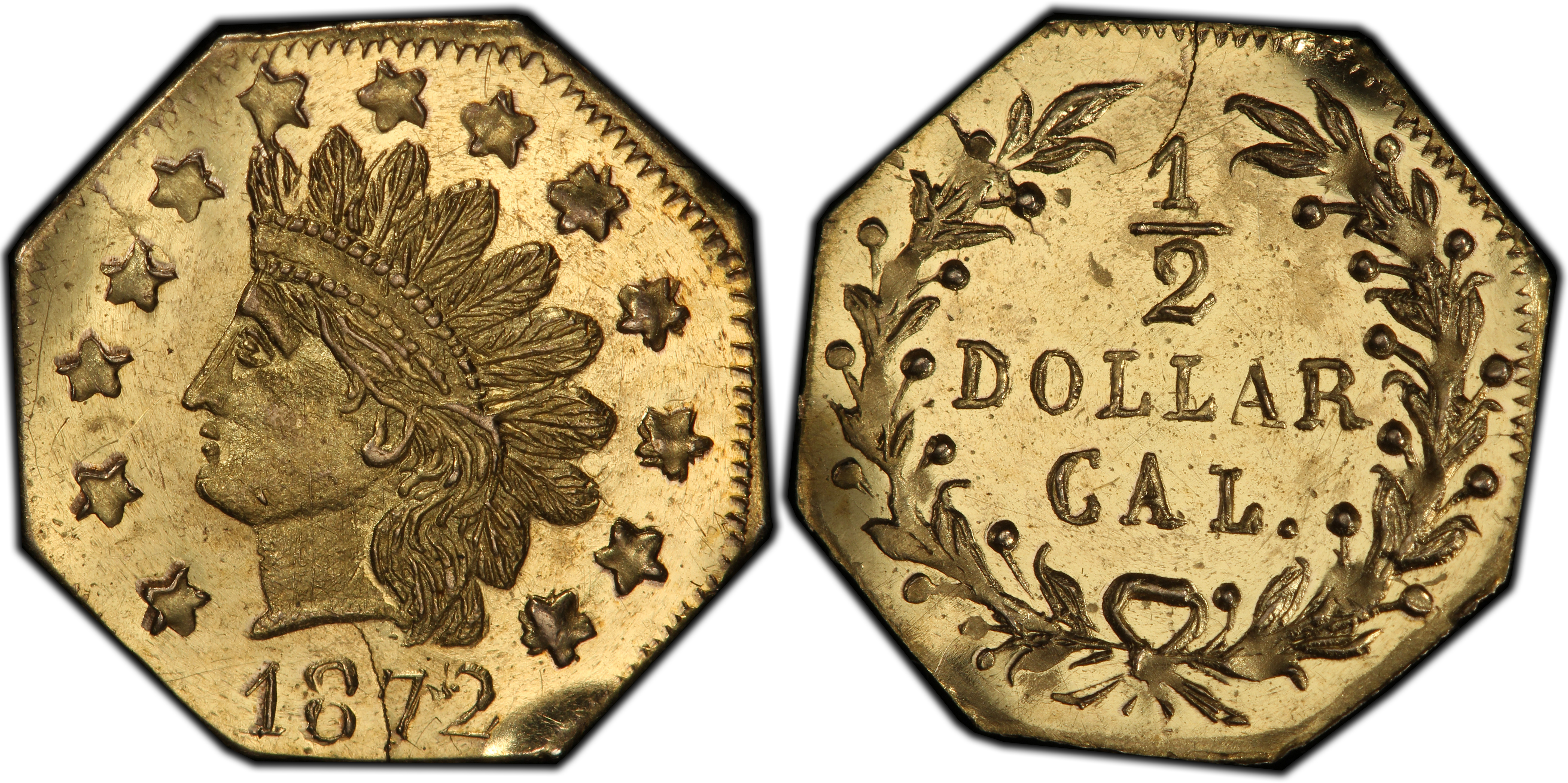 The 1872 50 Cents, cataloged as Breen-Gillio 939, is a quintessential example of a 'Period Two' California Fractional Gold piece. By the 1870s, the initial impetus for these tiny gold coins—a severe shortage of small-denomination federal coinage in Gold Rush California—had long since vanished. The establishment and high output of the San Francisco Mint in the mid-1850s saturated the region with official silver and gold coins, rendering the private issues obsolete for commerce. However, the romance of the Gold Rush had captured the nation's imagination, and California had become a significant tourist destination. Jewelers and private minters, recognizing a new market, pivoted from producing circulating currency to creating handsome souvenirs. These 'jeweler's issues,' as they are often called, were struck not to facilitate trade but to be sold as keepsakes, charms, and mementos of a visit to the Golden State. The BG-939 was struck during this era of robust souvenir production. Unlike the earlier Period One issues that more closely adhered to federal weight standards, Period Two pieces were notoriously underweight for their stated value, and their gold content could be inconsistent. Their legality was also dubious. The Private Coinage Act of 1864 had made such private issues illegal, but the law was not strictly enforced against these small, popular tokens until the U.S. Secret Service began a major crackdown. The producer of this variety, San Francisco jeweler Christopher Ferdinand Mohrig, fell victim to this enforcement. On August 10, 1876, he was arrested, and his inventory and coining equipment were confiscated and destroyed. This event makes his later-dated pieces, like those from 1872, particularly scarce, as his production was abruptly terminated. The BG-939, with its attractive Indian Head design, represents the peak of the souvenir era—a beautifully crafted memento whose existence was ultimately curtailed by federal law, cementing its status as a tangible link to a fascinating and legally gray chapter of American numismatic history.