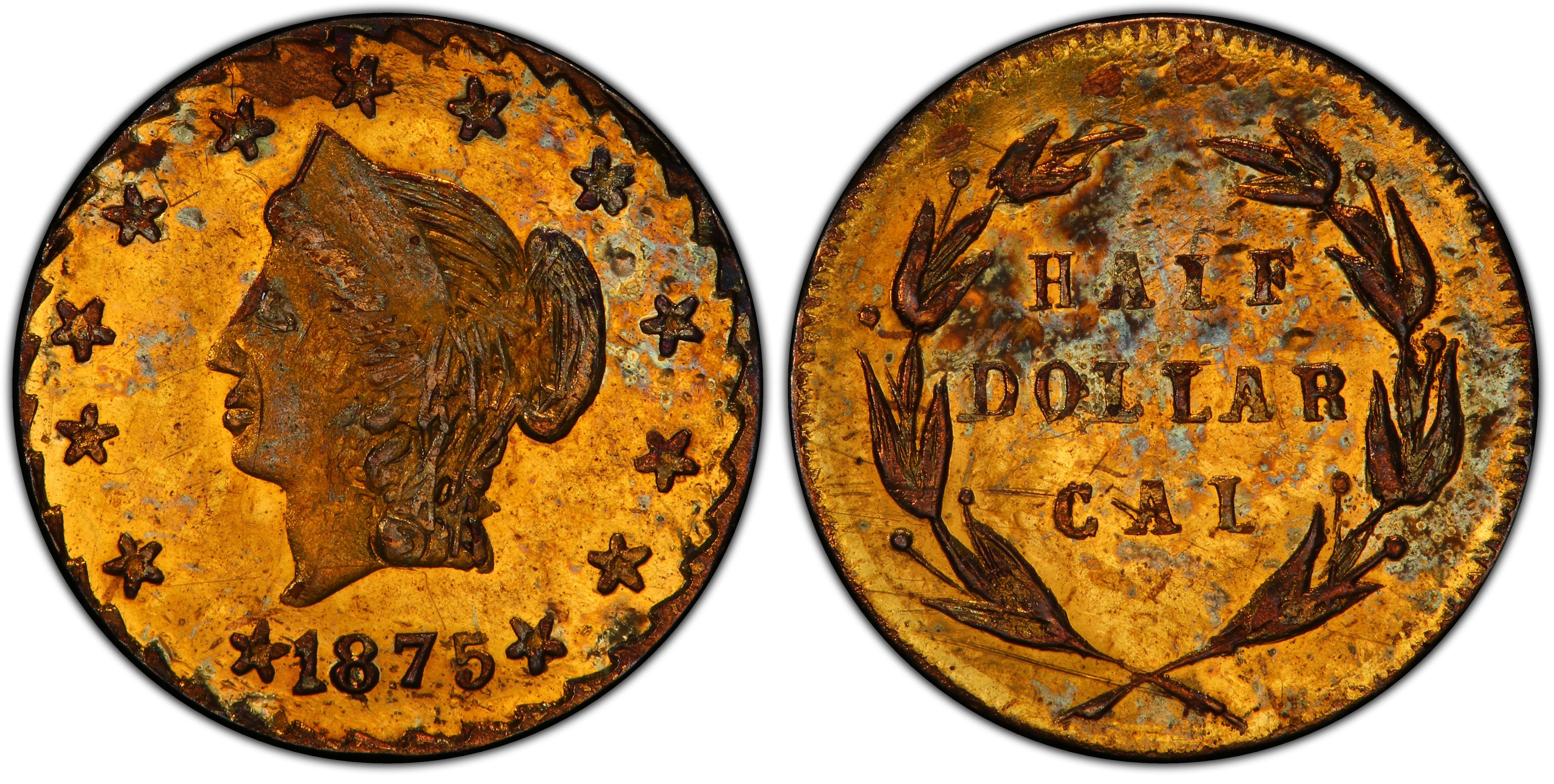 The 1875 BG-1035 50 Cents represents a fascinating and complex chapter in the history of U.S. private coinage, belonging to what numismatists classify as 'Period Two' (1859-1882) of California Fractional Gold. By the mid-1870s, the socio-economic landscape of California had matured significantly from the chaotic, early days of the Gold Rush. The initial, acute shortage of small change that spurred the creation of 'Period One' (1852-1857) pieces had been largely alleviated by the steady output of the San Francisco Mint. However, a different market emerged. These later 'jeweler's issues,' as they are often termed, were produced not primarily to satisfy a dire commercial need, but to cater to a burgeoning souvenir and novelty trade. Jewelers and private minters in San Francisco recognized the romantic allure that the Gold Rush held for both locals and tourists. These tiny gold pieces served as perfect, affordable mementos of California's golden identity. Unlike their predecessors, Period Two coins were often deliberately struck underweight, containing less gold than their face value implied, a clear indication of their souvenir-driven purpose. The Coinage Act of 1864 had officially prohibited private coinage, but enforcement was lax, allowing this cottage industry to persist until a federal crackdown in the early 1880s finally extinguished it. The BG-1035 was born into this environment. It was a product of skilled die-sinkers, yet its creation was more an act of commercial artistry than a response to monetary crisis. These pieces likely never saw widespread circulation in the traditional sense; instead, they were purchased as keepsakes, tucked away in jewelry boxes, or sent back East as curious examples of frontier enterprise. Their modern numismatic significance lies in this very duality: they are at once a continuation of the private minting tradition and a reflection of California's transition from a raw frontier to a place with a marketable history.