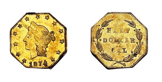 The 1874 Gold 50 Cents, cataloged as Breen-Gillio 929 (BG-929), is a product of the fascinating and complex period of California's post-Gold Rush economy. While the initial frenzy of the late 1840s and early 1850s had subsided, California remained a major gold producer, and its economy was uniquely specie-based. The rest of the nation grappled with paper money and the economic turmoil following the Civil War, but Californians distrusted anything but 'hard money.' This created a persistent local demand for coinage, especially for small denominations. The United States Mint in San Francisco produced standard federal coinage, but there was a commercial and cultural niche for smaller, privately issued gold pieces. These 'fractional gold' pieces, in denominations of 25 cents, 50 cents, and one dollar, were not legal tender but served as popular items for commerce, gifts, and souvenirs, filling a void left by the scarcity of small federal silver coins which were often hoarded. Minted by various jewelers and private assayers in San Francisco, these tiny coins mimicked federal designs to inspire confidence, often featuring a Liberty head and a wreath. The period from the 1870s to the early 1880s saw the final chapter of this unique coinage. The pieces were struck with a lower intrinsic gold value compared to their face value, making them profitable tokens. However, their existence drew the ire of the U.S. Treasury Department. The Secret Service viewed them as illegal private coinage that violated federal law, leading to crackdowns and the eventual cessation of their manufacture around 1882. The BG-929 variety from 1874 is a quintessential example of this later period, characterized by more standardized, mass-produced designs compared to the cruder issues of the 1850s. Its survival today provides a tangible link to California's vibrant and independent economic spirit and the twilight of America's private coinage era.