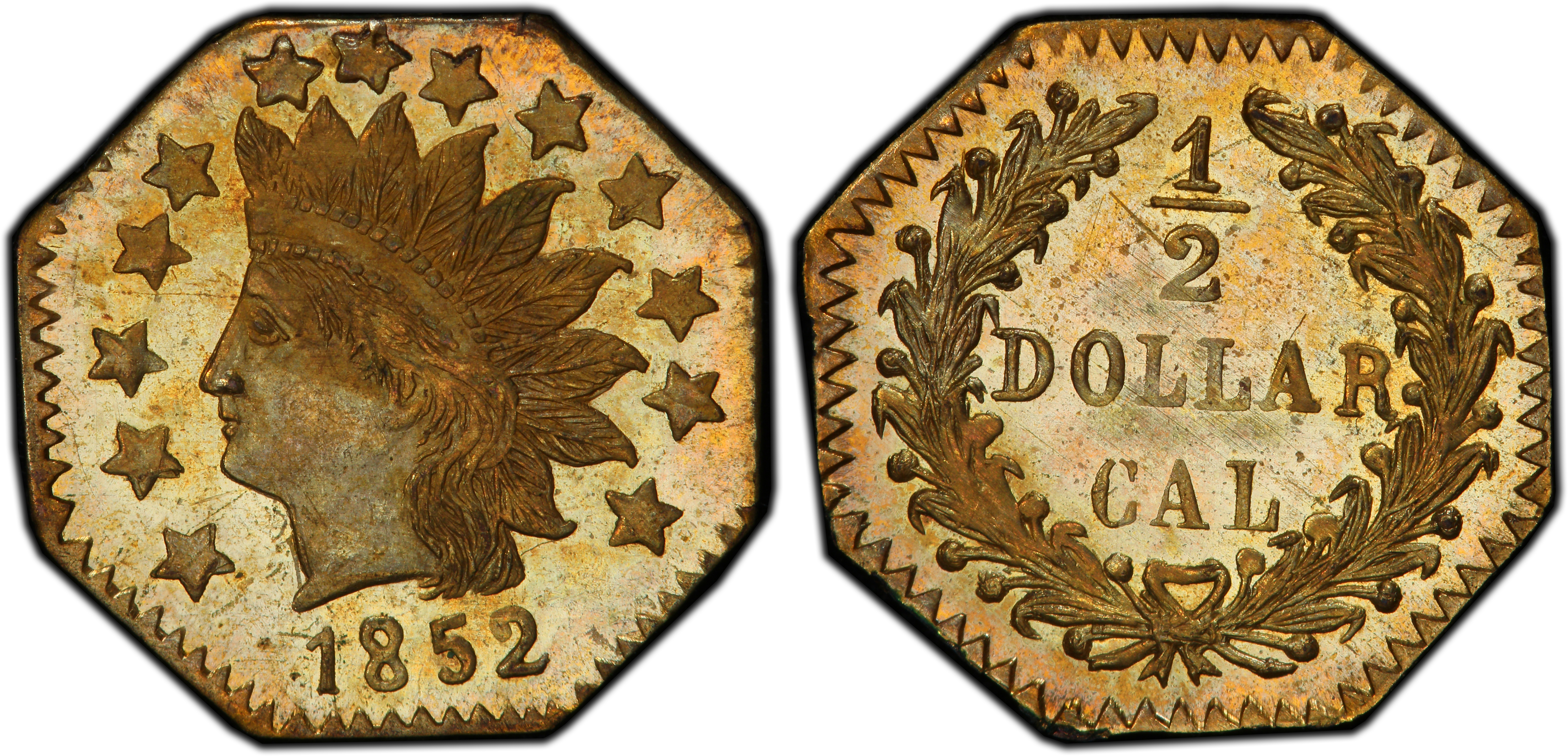 The 1852 Gold 50 Cents, cataloged as Breen-Gillio 962A, is a quintessential artifact from the chaotic, formative years of the California Gold Rush. Following the discovery of gold at Sutter's Mill in 1848, a massive influx of prospectors and merchants descended upon California, creating a vibrant but fundamentally flawed economy. While massive quantities of gold dust and large-denomination private ingots circulated, there was a severe, crippling shortage of small-denomination coinage for daily transactions. A pinch of gold dust for a drink or a meal was an imprecise and often contentious method of payment. This monetary vacuum spurred private jewelers and metallurgists in San Francisco to action. Among the most prominent of these was Antoine Louis Nouizillet, a French jeweler whose name is associated with many of the finest and most competently produced 'Period One' (1852-1857) issues. These early pieces, unlike the later, often debased 'Period Two' souvenir issues, were struck with the genuine intent of serving as a circulating medium. They were hammered by hand, a crude but effective method where dies were struck with a sledgehammer, resulting in significant variation in strike quality. The BG-962A was part of this first wave of fractional gold. Though its intrinsic value was less than its face value, it was readily accepted in commerce out of sheer necessity. The coins were notoriously small and easily lost, a fact that contributed to their high attrition rate and subsequent rarity. The passage of the private coinage act in 1864 officially ended their legal status, but by then, the establishment of the San Francisco Mint in 1854 and the increasing supply of federal silver coinage had already rendered them largely obsolete. Today, the BG-962A is a tangible link to a time when California's economy was being forged, not by a government, but by the ingenuity and enterprise of private individuals responding to the urgent needs of their community.