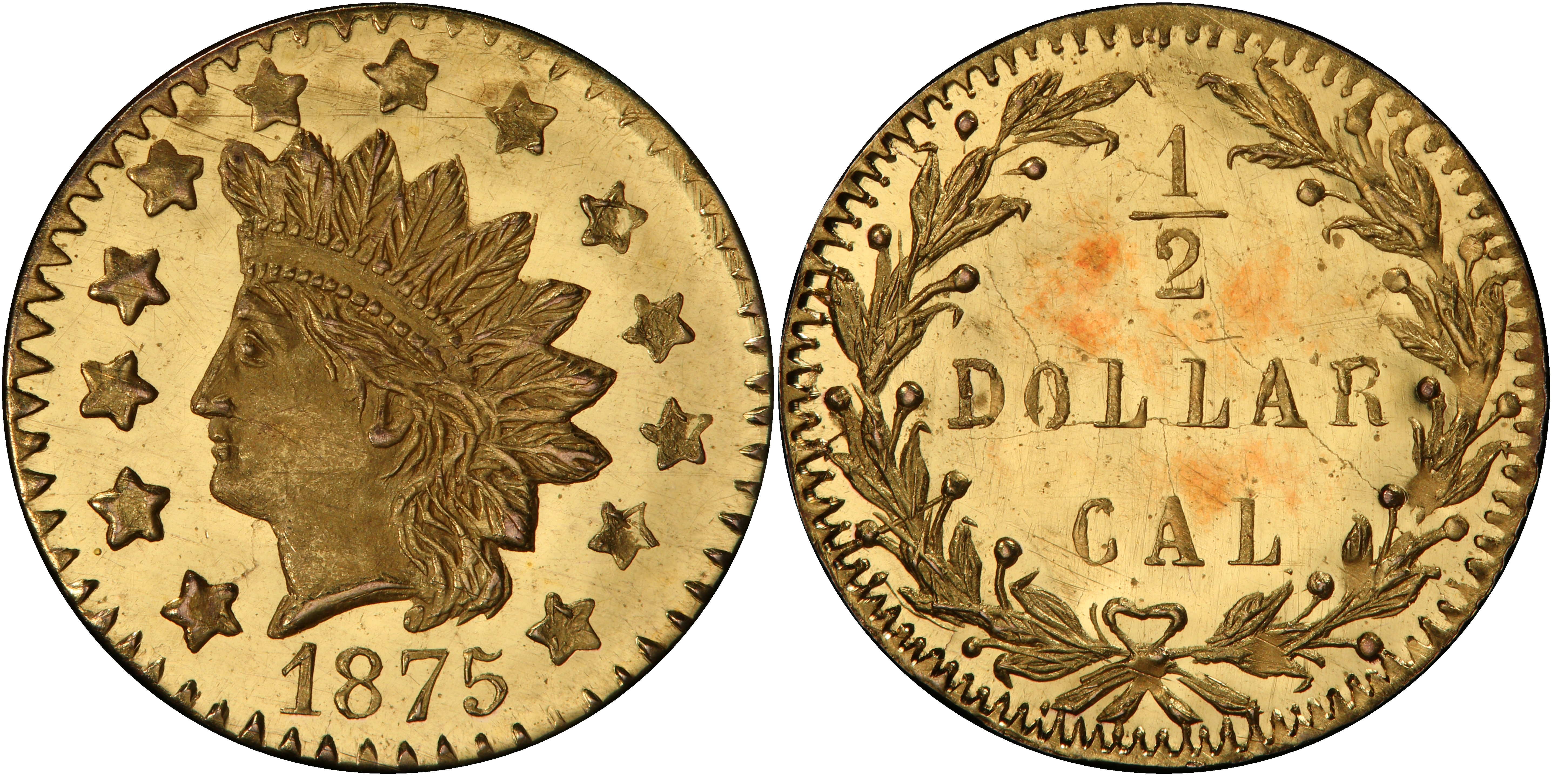 Historical SignificanceThis coin is a significant artifact of the post-Gold Rush economy in California, illustrating the transition of private gold coinage from a commercial necessity to a nostalgic souvenir. It represents the work of jewelers like Herman Brand who capitalized on the romantic image of the Gold Rush, and the DMPL quality highlights the emphasis on appearance and marketability over intrinsic value. As an R-6 variety, its high rarity underscores the small-scale, artisanal nature of its production.