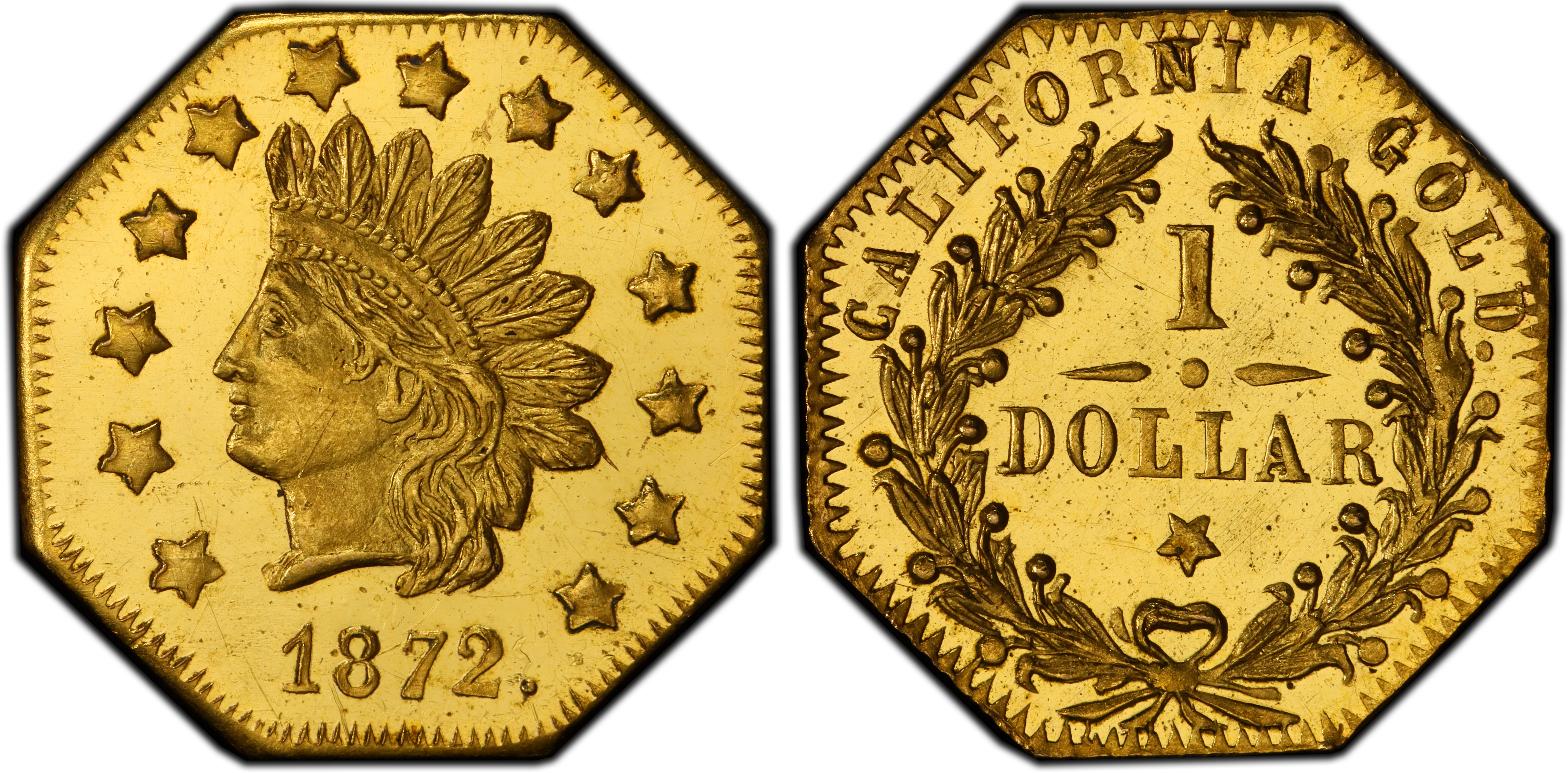 The 1872 G$1 BG-1120 is a quintessential example of a 'Period Two' California Fractional Gold piece, a fascinating series born from the entrepreneurial spirit of the California Gold Rush. The initial fractional gold issues, struck from 1852 to 1857 ('Period One'), arose from a genuine necessity for small-denomination coinage in the rapidly expanding, gold-rich economy of the West, where federally issued small change was critically scarce. These early pieces, though privately minted, were intended for and saw actual circulation. By the 1870s, however, the landscape had changed dramatically. The San Francisco Mint, opened in 1854, was producing ample federal coinage, obviating the commercial need for private issues. The motivation for producing fractional gold thus shifted from commerce to tourism and collectibles. These 'Period Two' issues (1858-1882), often termed 'Jewelers' Issues,' were created primarily as souvenirs and keepsakes. San Francisco had become a major tourist destination, and these diminutive gold pieces were popular, easily mailable mementos of a visit to the Golden State. Unlike their Period One predecessors, which generally contained gold value close to their face value, Period Two pieces were often underweight and made of lower fineness gold, functioning as tokens rather than true currency. Their production was technically illegal under the Coinage Act of 1864, but federal enforcement was lax until the early 1880s, allowing dozens of jewelers to produce a myriad of varieties. The BG-1120, with its crisp Indian Head design, was part of this later wave. Struck with polished dies to impart a flashy, mirrored surface, especially on DMPL (Deep Mirror Prooflike) examples, they were clearly intended to dazzle the buyer. The ultimate crackdown by the Secret Service in 1883 brought an end to this colorful chapter of private minting, solidifying the rarity and historical allure of the surviving pieces.