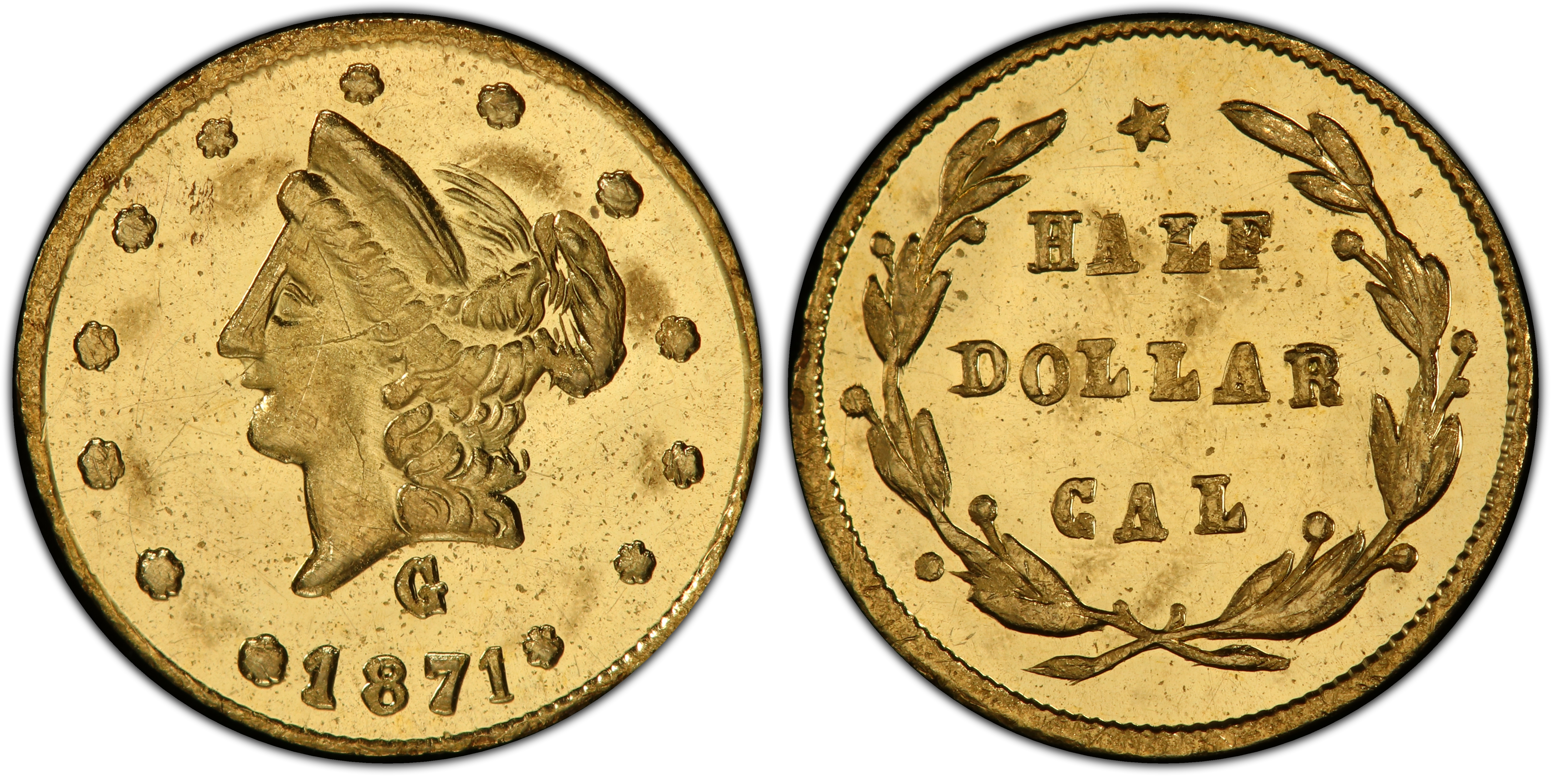 The 1871 50 Cents, cataloged as Breen-Gillio 1027, is a product of the second period (1858-1882) of California Fractional Gold production. Unlike the earlier 'Period One' issues struck out of commercial necessity during the height of the Gold Rush to alleviate a shortage of small change, these later pieces served a different purpose. By the 1870s, the San Francisco Mint was in full operation, supplying ample federal coinage for the region. The rationale for producing these minuscule gold coins had shifted from commerce to curiosities. San Francisco had blossomed into a major metropolis and a tourist destination, and a powerful sense of regional pride and nostalgia for the 'Days of '49' had taken hold. Enterprising local jewelers, many of whom had produced the earlier necessity coinage, recognized a market for high-quality souvenirs. They began striking a wide variety of beautifully crafted, albeit typically underweight, fractional gold pieces intended for sale to tourists, collectors, and locals who wished to send a tiny, glittering memento of California's golden identity to friends and family back East or abroad. These 'Jeweler's Issues' were often more ornate and varied in design than their utilitarian predecessors. The BG-1027 was struck in this environment, not to buy a drink at a saloon, but to be tucked away in a velvet-lined box as a keepsake. The Coinage Act of 1864 had made private coinage illegal, but the law was not strictly enforced against these small-denomination pieces until 1883, allowing jewelers to operate in a legal gray area. These pieces, therefore, represent a fascinating transition from private, functional currency to commercial numismatic art and memorabilia.