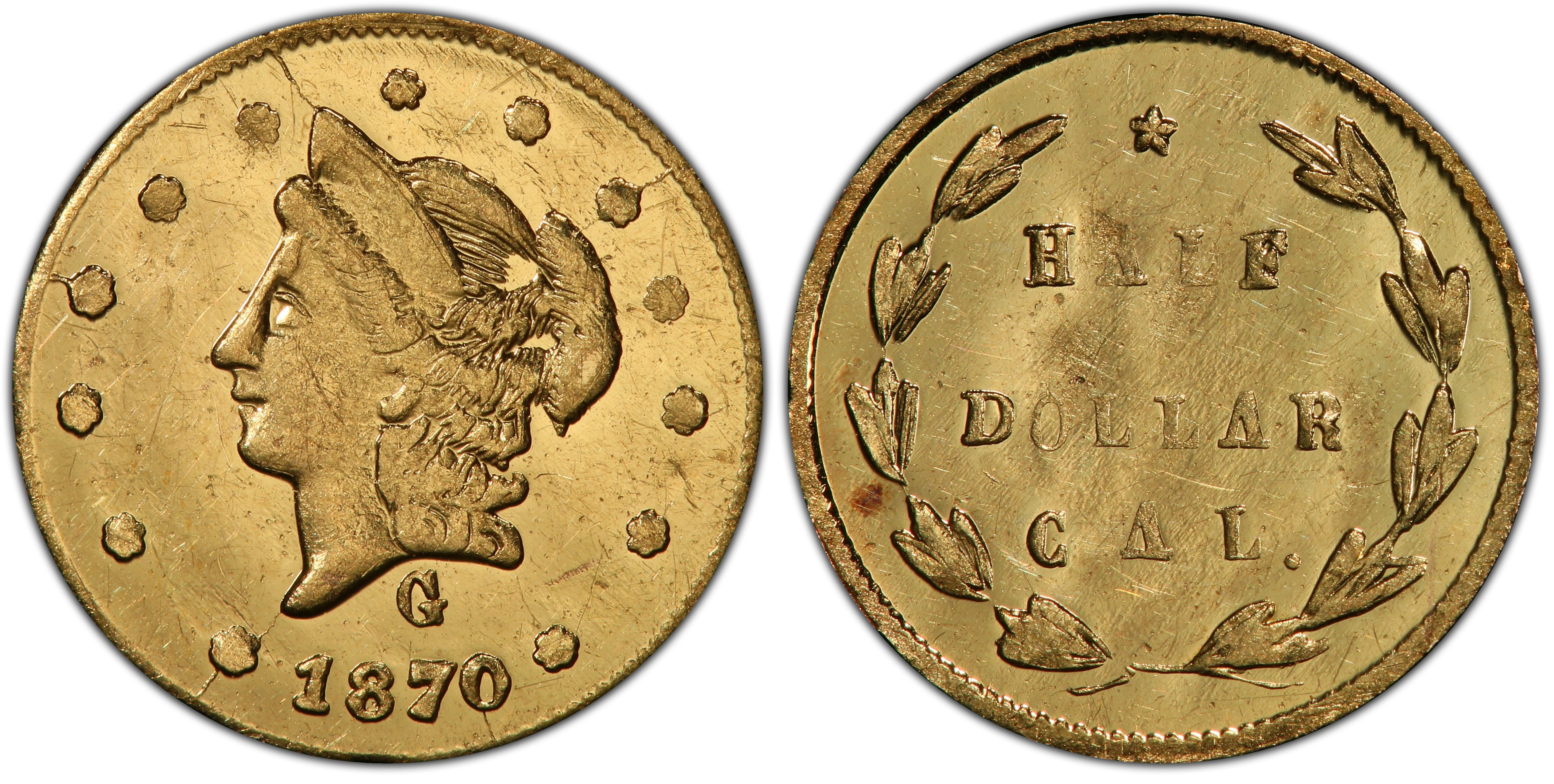The 1870 BG-1024 50 Cent piece is a quintessential example from the second period of California Fractional Gold production (1859-1882). Following the initial Gold Rush boom, the acute shortage of small circulating coinage that had prompted the first wave of private issues (1852-1857) was largely resolved by the output of the San Francisco Mint, which opened in 1854. However, a new market emerged. These small, intricate gold tokens became highly popular as souvenirs, keepsakes, and jewelry items, both for locals and for tourists fascinated by the romance of the Golden State. Jewelers in San Francisco, many of French origin, stepped in to meet this demand, creating a vast and diverse array of quarter, half, and dollar gold tokens. Unlike the earlier 'Period One' issues that were struck with the primary intent to circulate, these 'Period Two' or 'jeweler's issues' often had a gold content worth less than their face value. Their production continued unabated despite the Private Coinage Act of 1864, which made such activities illegal. Federal authorities largely turned a blind eye to these tiny souvenir pieces, as they posed little real threat to the monetary system. Production flourished in the 1870s, a testament to their popularity. It wasn't until 1883, when Secret Service Chief James J. Brooks determined they represented a potential for fraud, that enforcement was finally stepped up, bringing the era of California Fractional Gold to a close. The BG-1024 variety, dated 1870, was part of this thriving souvenir trade, created not to pay for a shave or a drink, but to be tucked away as a memento of an extraordinary time and place in American history.