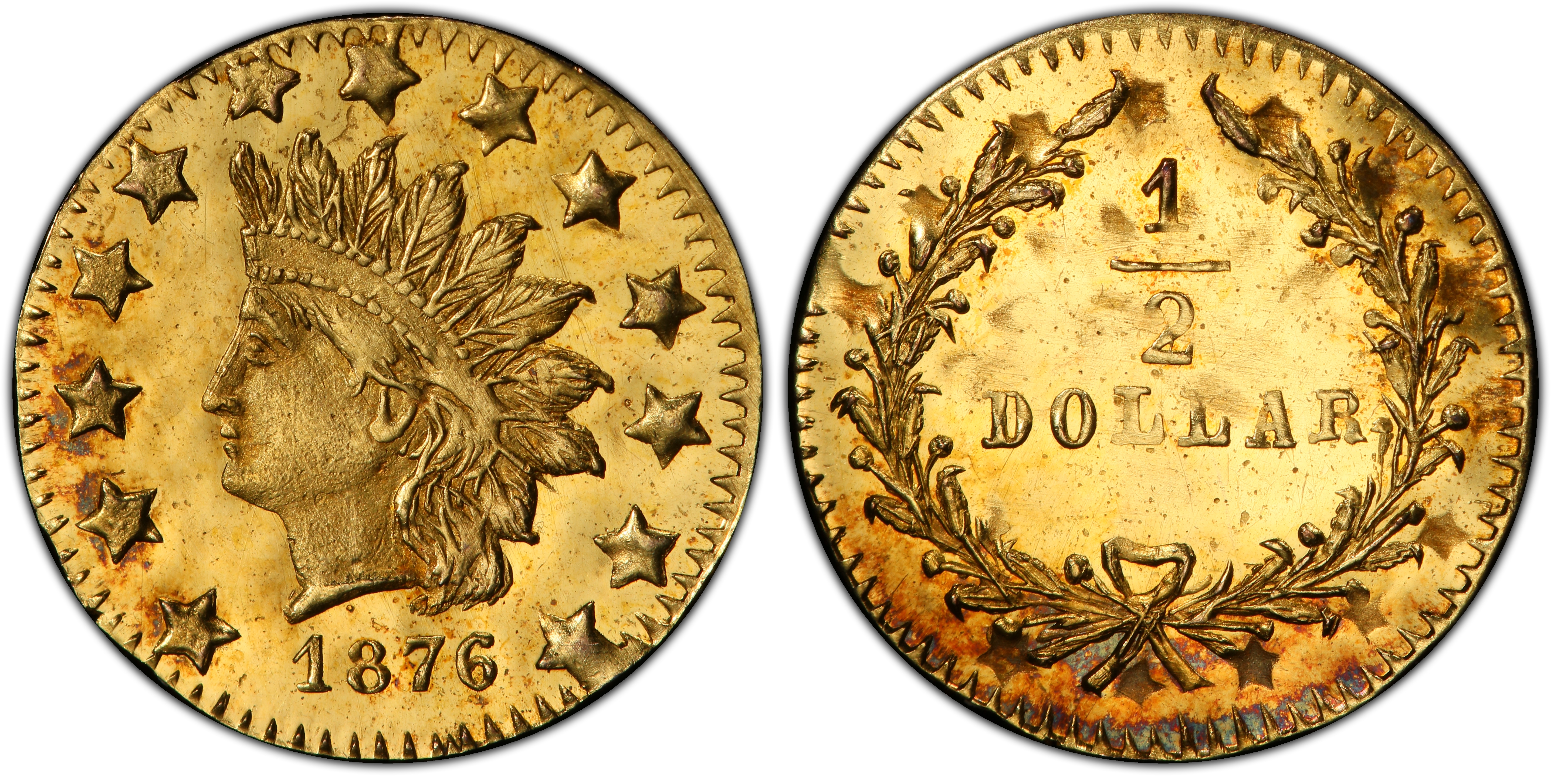 The 1876 BG-1065 fifty-cent piece emerges from the second major phase of California Fractional Gold production, a period numismatists designate as 'Period Two' (circa 1858-1882). Unlike their 'Period One' predecessors, which were struck out of genuine commercial necessity to alleviate a shortage of small change during the initial Gold Rush, these later issues served a different purpose. By the mid-1870s, the United States Mint in San Francisco was in full operation, supplying the region with ample federal coinage. The raison d'ĂȘtre for fractional gold had shifted from commerce to commemoration and curiosity. These small gold pieces, including the BG-1065, were produced by various jewelers and artisans in San Francisco primarily as souvenirs for tourists, collectors, and citizens nostalgic for the heady days of the '49ers. The year 1876 was particularly significant as it marked the nation's Centennial, an event that spurred the production of countless tokens and keepsakes across the country, a trend the California jewelers readily embraced. The Coinage Act of 1864 had officially prohibited private coinage, but the law was not aggressively enforced against these small, low-value 'tokens' until the Secret Service cracked down in the early 1880s. This legal gray area allowed for a prolific output of diverse designs. The BG-1065, with its popular Indian Head motif, was designed to be attractive and exotic to buyers. These pieces were not intended to contain their full face value in gold; they were a form of token sold at a premium. Their production was often crude, using the 'hammer method' where dies were struck by hand, leading to variability in strike quality. Despite their unofficial status, they represent a fascinating chapter in the story of Western expansion, capturing the transition of California from a raw frontier to a place with a history worth mythologizing and selling. The BG-1065 is a tangible artifact of this Gilded Age tourist trade and the enduring allure of California gold.